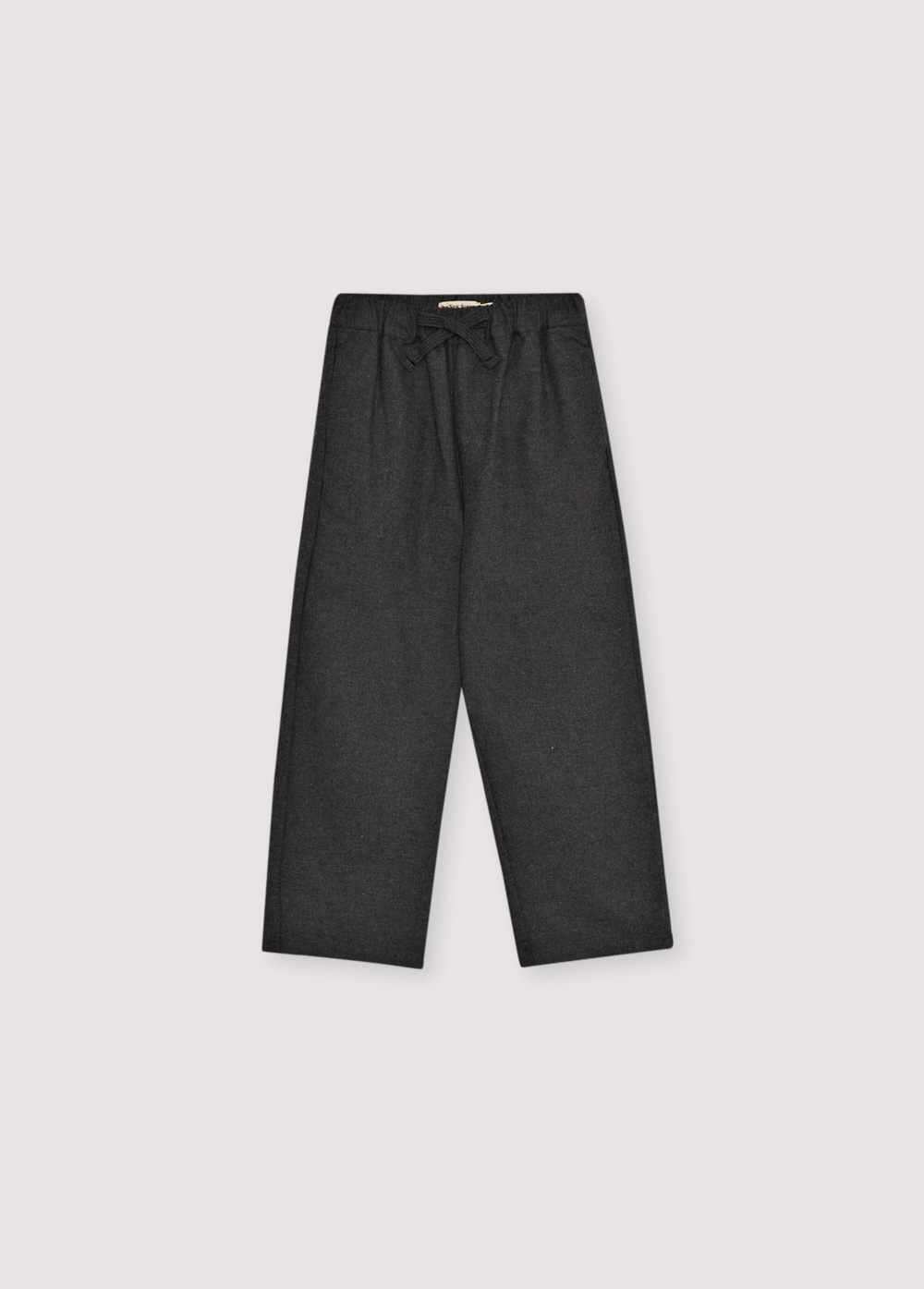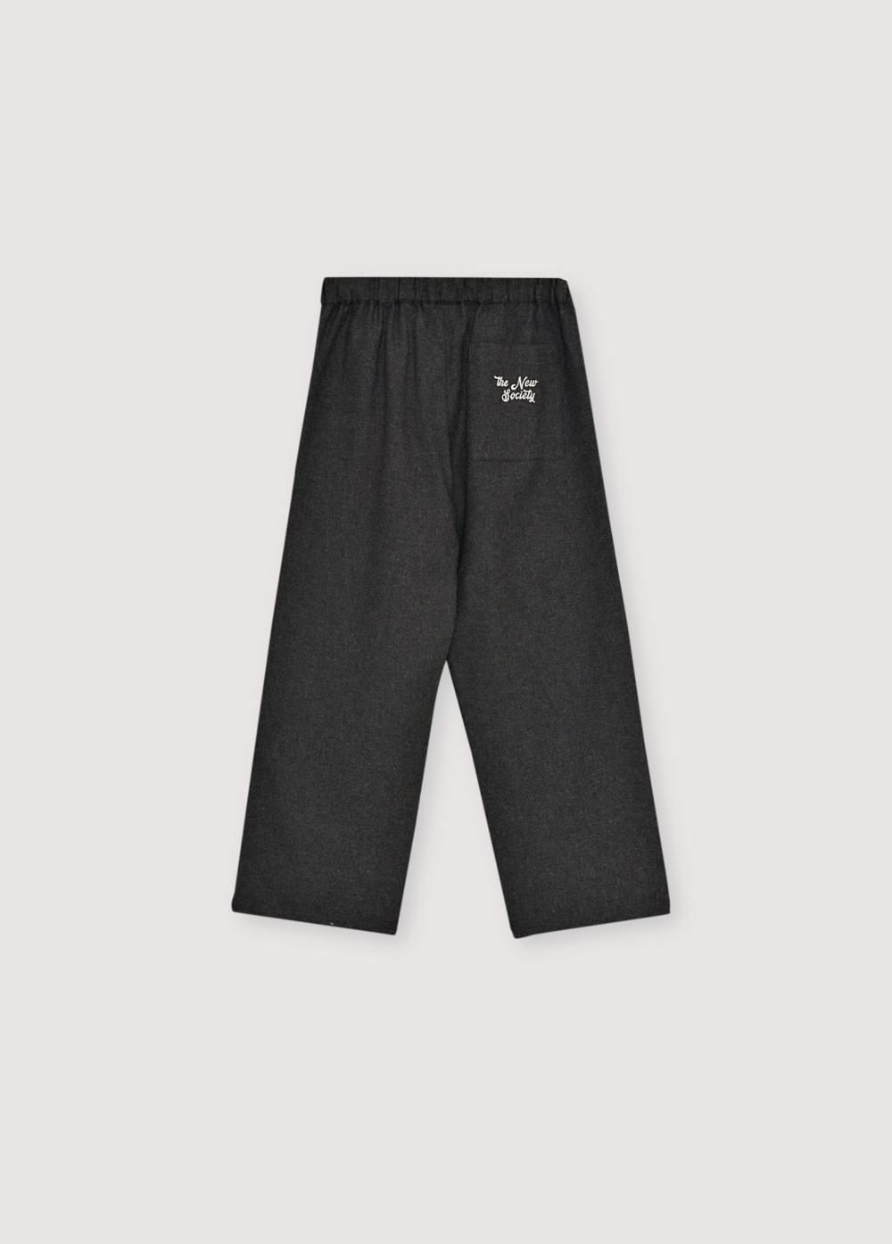Prachtige broek van The New Society in een donker grijze kleur. De pantalon look broek heeft een elastische taille met koordje en een zakje aan de achterkant. Het rechte model is gemaakt van een heerlijk zachte organic cotton.The New Society valt aan de kleine kant, zie onderaan de pagina een overzicht van de maten.