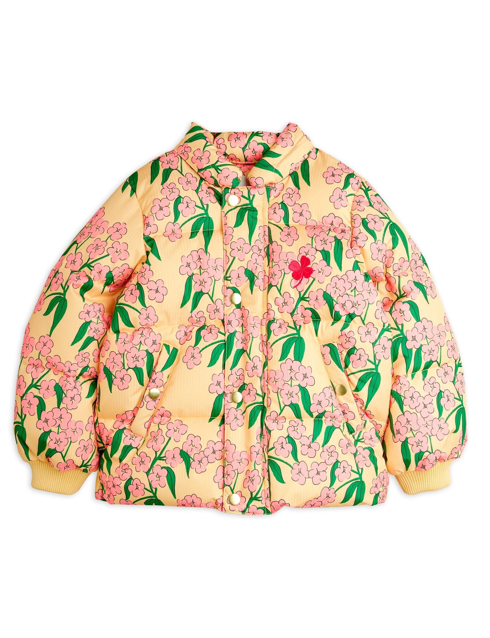 Heerlijk warme winterjas van Mini Rodini in een vrolijke gele kleur met all-over bloemenprint. De korte puffer heeft een afneembare capuchon, zakken aan de zijkant en elastisch geribbelde boorden. Hij is gemaakt van gerecycled polyester. Lees meer