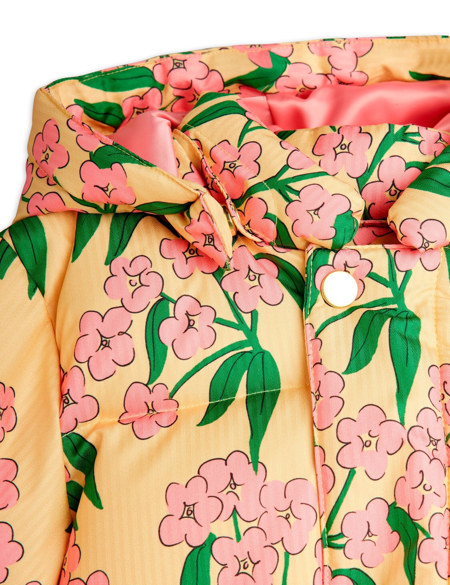 Heerlijk warme winterjas van Mini Rodini in een vrolijke gele kleur met all-over bloemenprint. De korte puffer heeft een afneembare capuchon, zakken aan de zijkant en elastisch geribbelde boorden. Hij is gemaakt van gerecycled polyester.