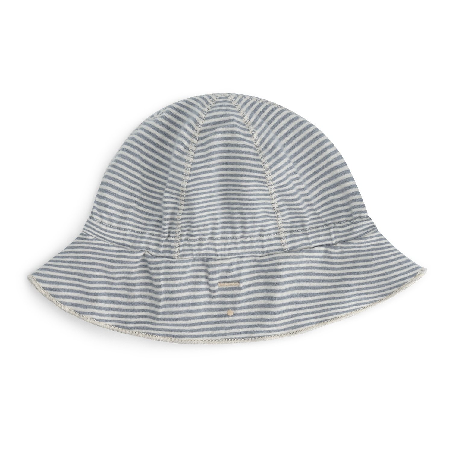 Zacht baby zonnehoedje van organic cotton in de nieuwste kleur Stone Grey. Het hoedje is te verstellen met het koordje en gemaakt van een zachte organic cotton. Lees meer