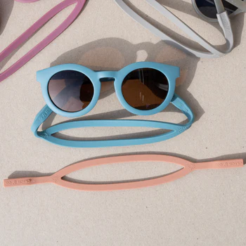 Met deze sunglasses straps van Grech & Co in donker blauw verlies je nooit meer een zonnebril. Bevestig de flexibele koordjes eenvoudig aan de pootjes van de bril. De straps zijn geschikt voor de kleintjes tot en met 3 jaar.