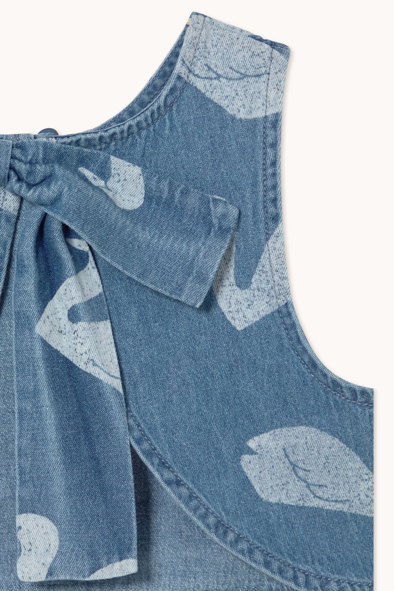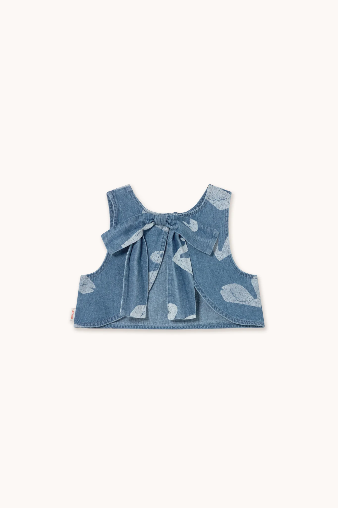 Te gekke top van Tinycottons met een zwanen print in een lichte denim wash. Het korte model heeft een sluiting op de rug en een elegante strik. Hij is gemaakt van organic cotton. Lees meer