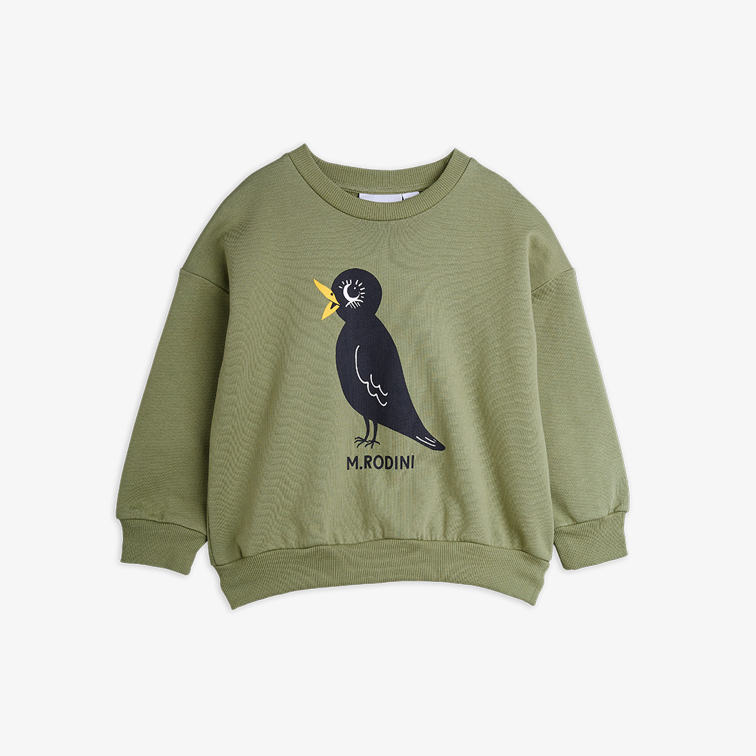 Sweatshirt van Mini Rodini in het groen met black bird opdruk. De trui heeft een relaxte pasvorm, een ronde hals en geribbelde boorden. Hij is gemaakt van 100% GOTS gecertificeerd organic cotton. Lees meer