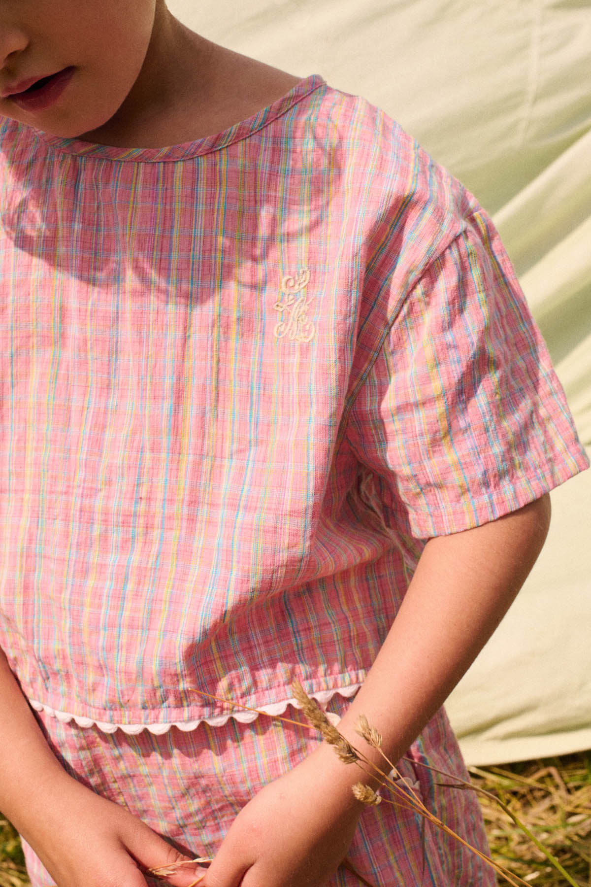 Te gekke korte top van Louise Misha in de prachtige roze ruit. Deze bestseller heeft een gekruist rug detail en een subtiel kanten randje. Er is ook een bijpassende broek om de look helemaal compleet te maken. Hij is gemaakt van een geweven katoen. Lees meer