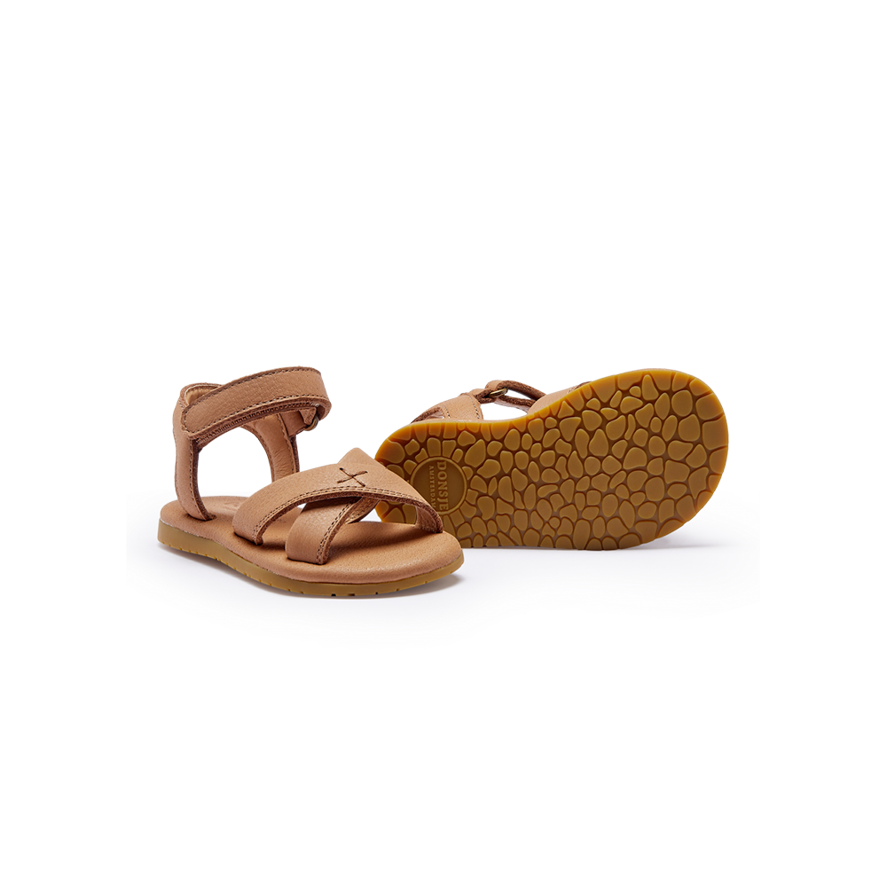 Tijdloos peuter sandaaltje van Donsje in beige bruin. Het schoentje heeft een handige klittenband sluiting en is gemaakt van een premium kwalitit leer. Ook leuk als cadeau!