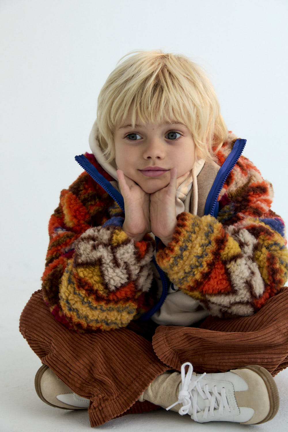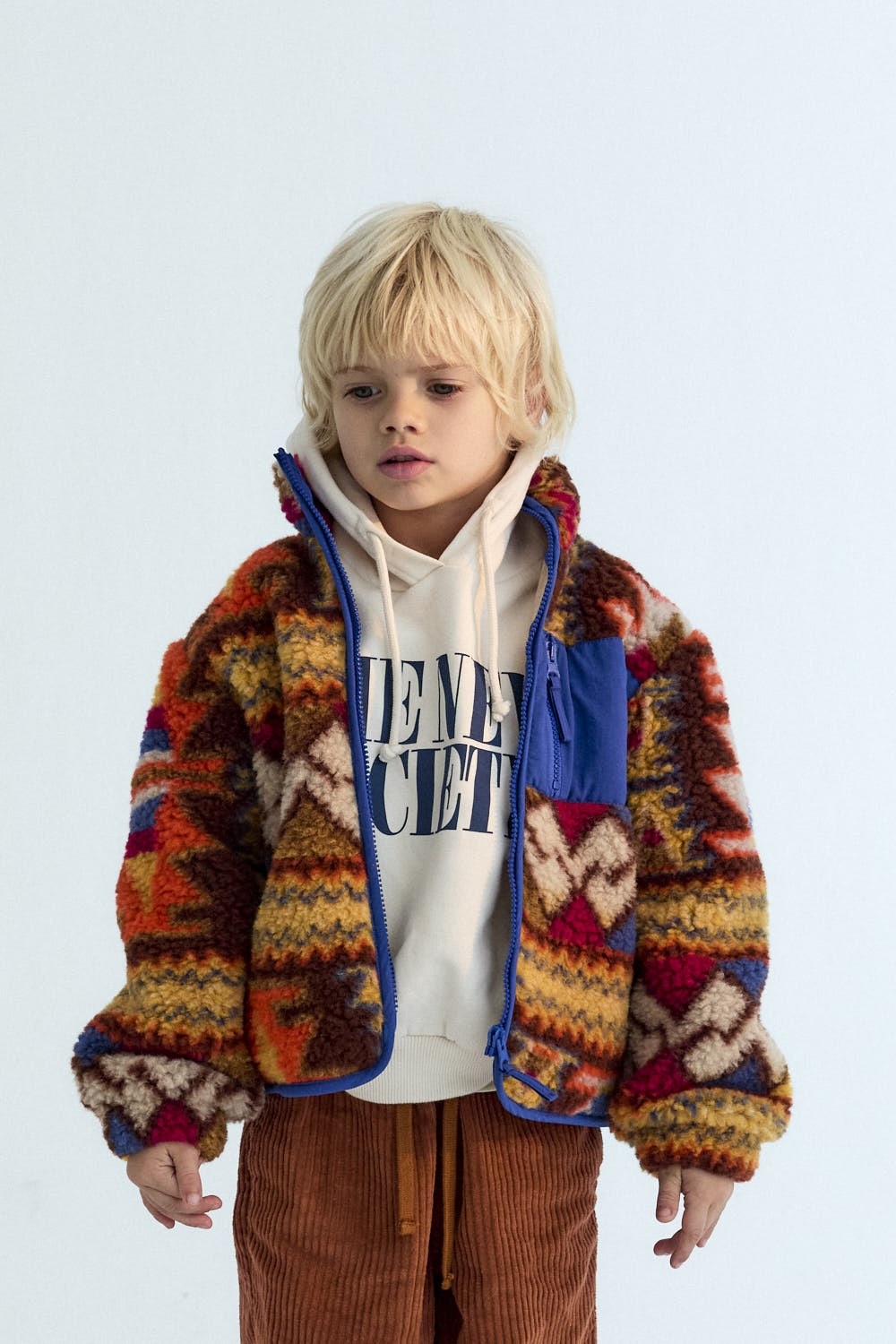 Met dit jasje van The New Society steel je de show. Het relaxte model is uitgevoerd in een kleurrijk jacquard en heeft contrasterende details. Het met fleece gevoerde jasje heeft een stevige buitenkant en is gemaakt van een warme wol blend.The New Society valt aan de kleine kant, zie onderaan de pagina een overzicht van de maten.