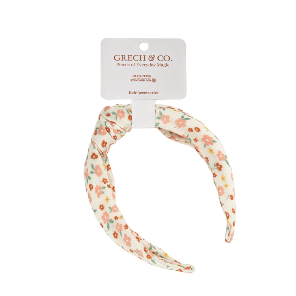 Met deze haarband in prachtige bloemenprint en knoop detail van Grech & Co maak je elk kapsel compleet. Of je nu dik, dun, krullend of stijl haar hebt. Hij is gemaakt van organic cotton.