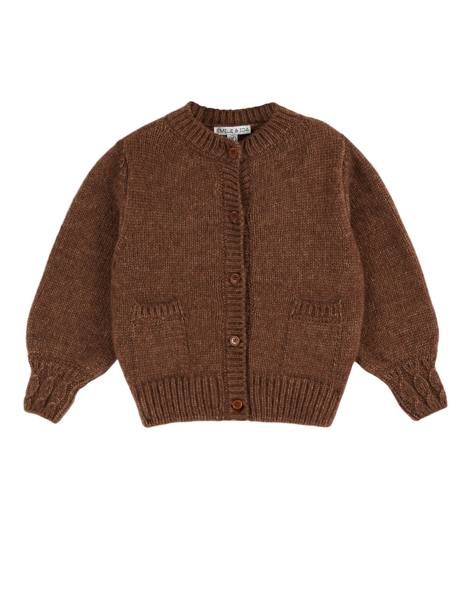 Prachtig gebreid vest van Emile et Ida in en tijdloze bruine kleur voor baby & kids.Het rechte model heeft een relaxte pasvorm, decoratieve zakjes aan de voorkant en knoopjes van boven tot onder. Hij is gemaakt van een zachte merino en katoen blend. Het merk Emile valt iets kleiner dan normaal, zie onderaan de pagina voor een overzicht van de maten.