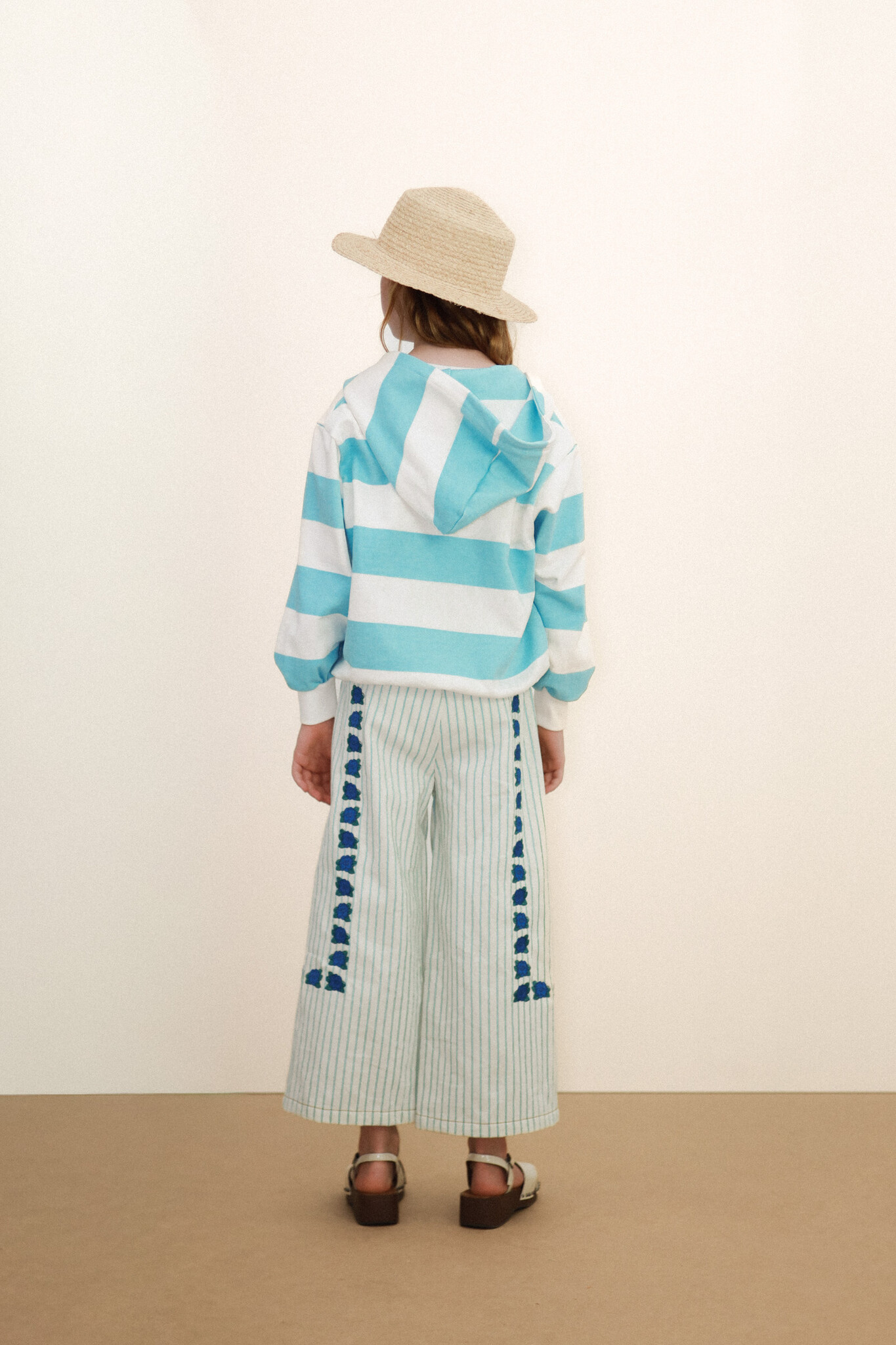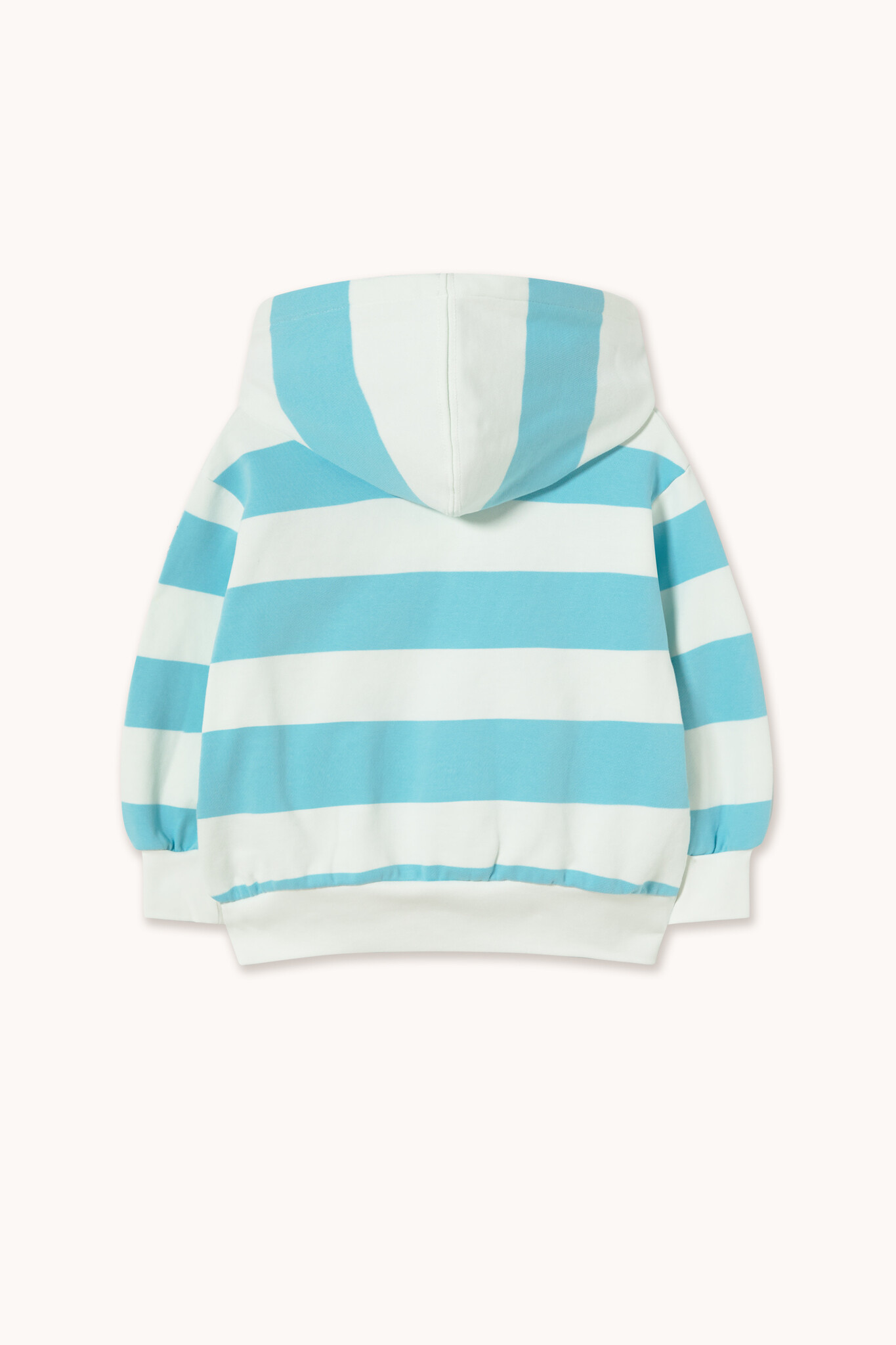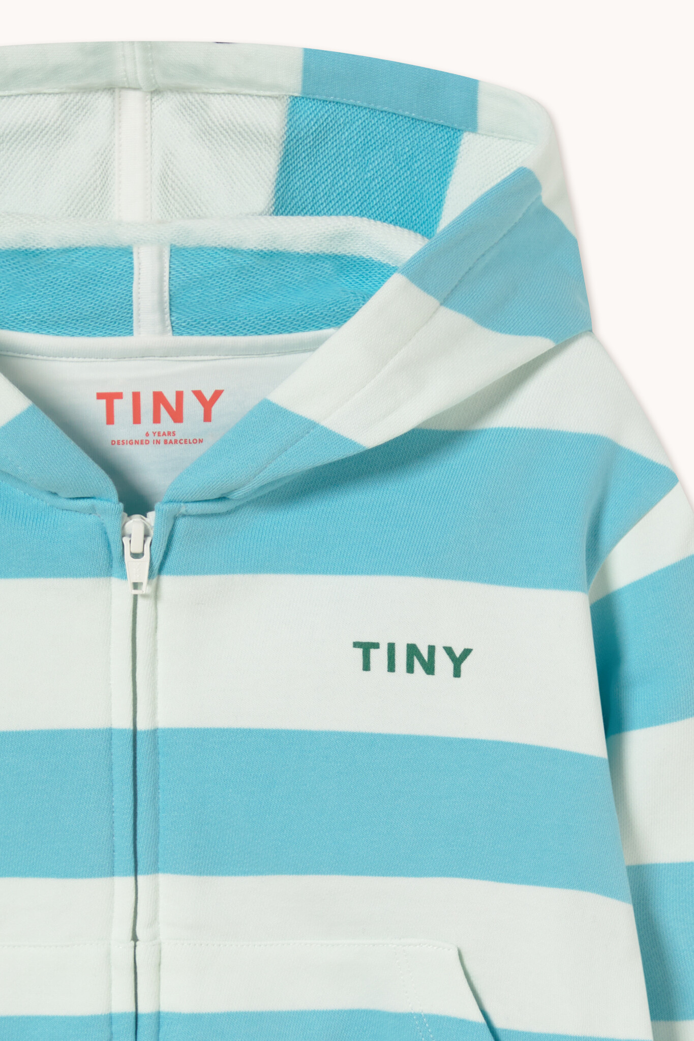 Zachte hoodie van Tinycottons in een licht blauwe streep. Het vest met capuchon heeft geribbelde boorden, een logo detail op de borst en een rits van boven tot onder. Hij is gemaakt van een heerlijk zachte organic cotton.