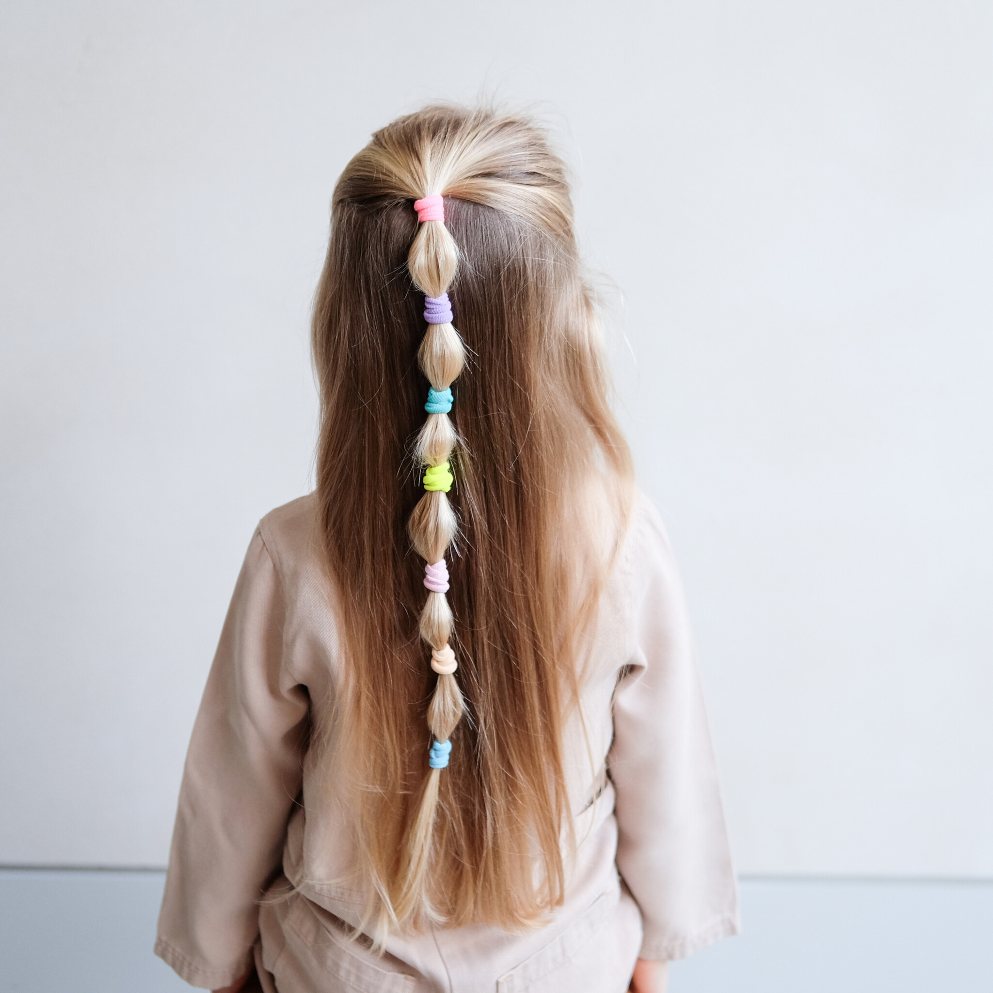 Set van 16 zachte haar elastieken van Mimi & Lula in vrolijke kleuren.