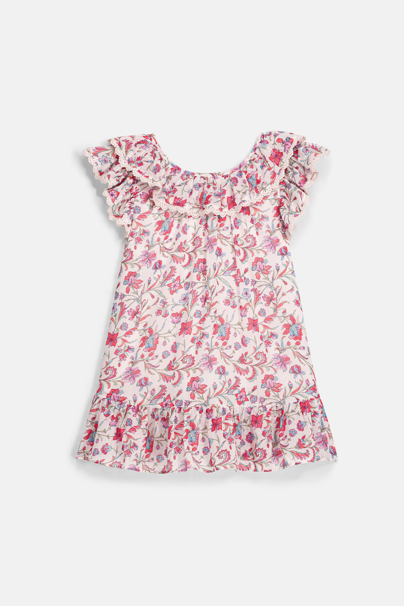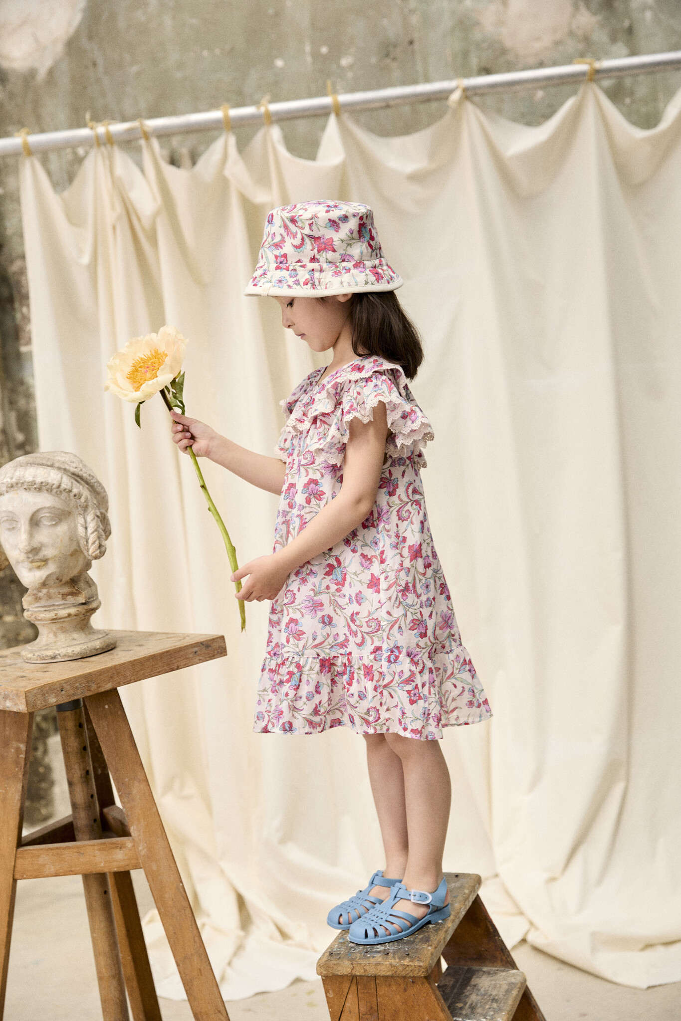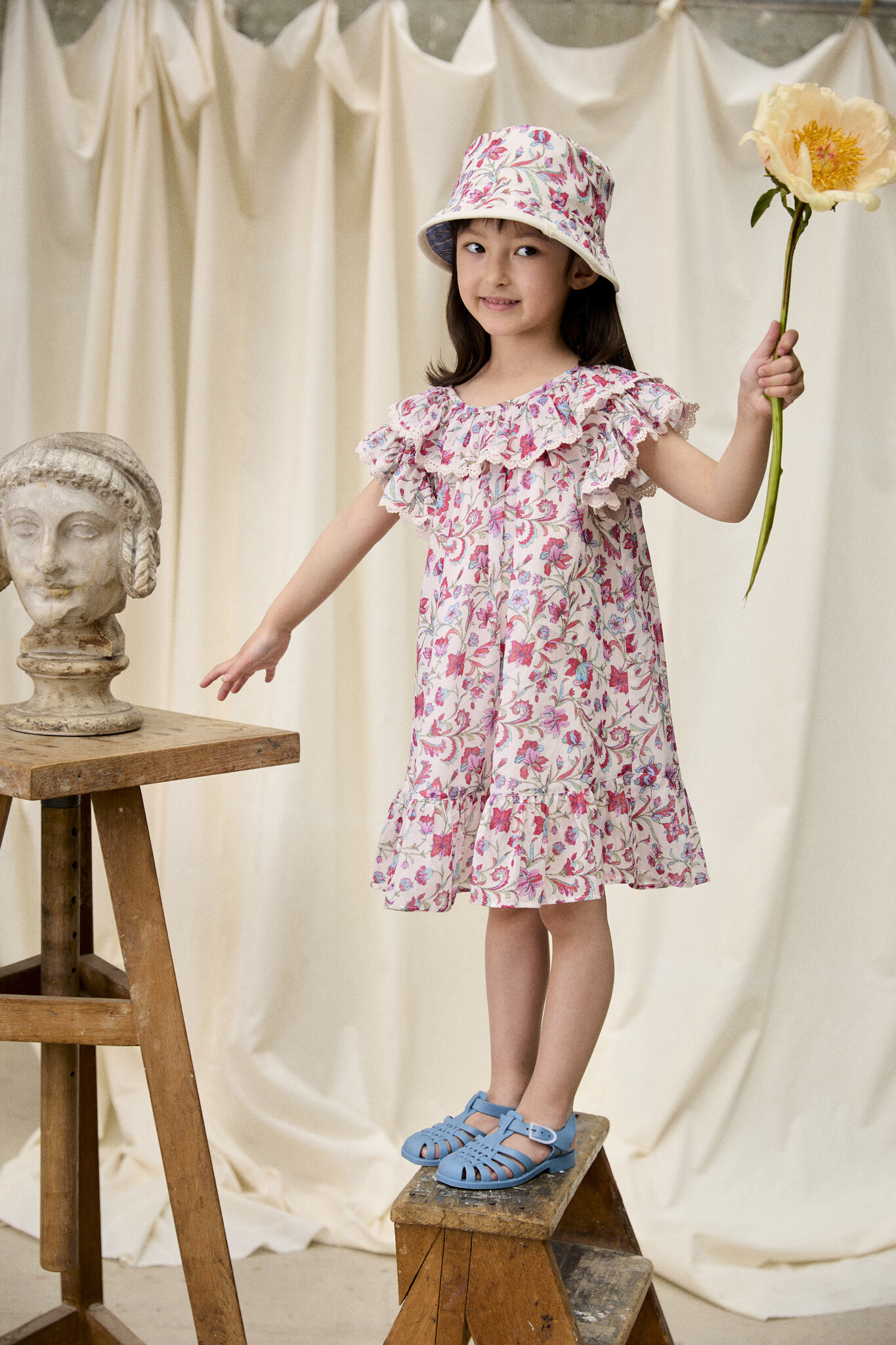 Zomerse jurk van Louise Misha in de prachtige 'Cream Floral Haven' print. Het los vallende mouwloze model is voorzien van rushes, kanten randjes en ronde ruglijn aan de achterkant. De gevoerde jurk is gemaakt van organic cotton. Lees meer