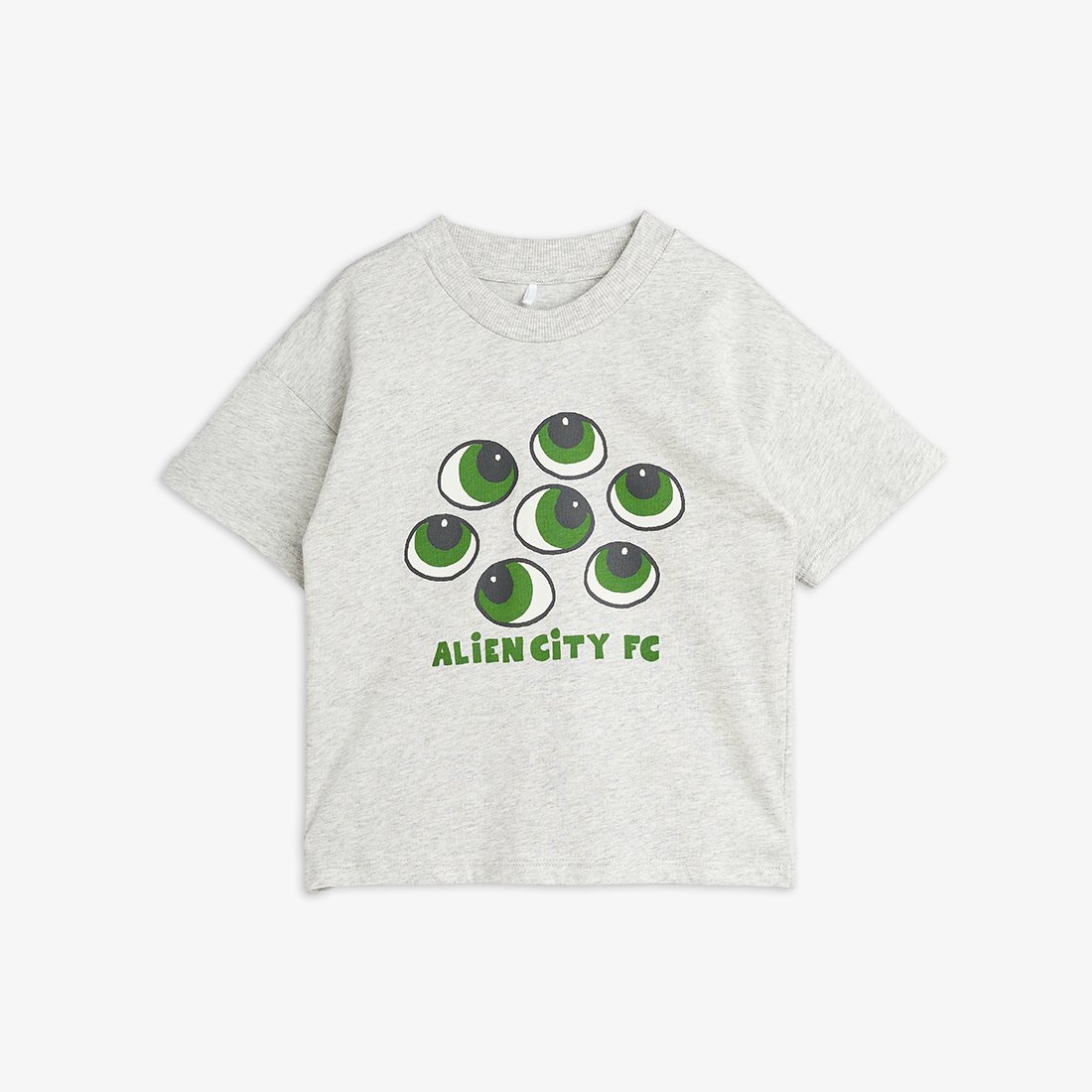 Stoer grijs t-shirt van Mini Rodini met ogen. Het rechte model heeft een ronde hals, korte mouwen en is gemaakt van organic cotton. Lees meer