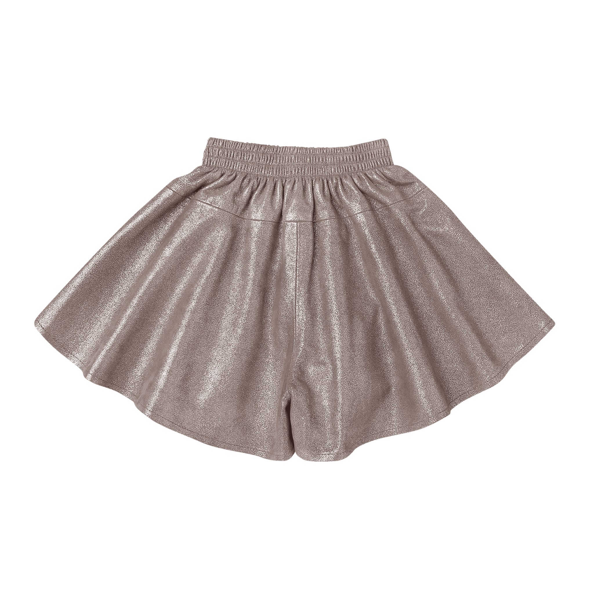 Een unieke leren short van Donsje in grijs metallic. Dit te gekke broekje is een echte eyecatcher en heeft een volumineus effect. Gemaakt van 100% kwaliteits leer. Donsje valt normaal op maat tot iets groter, zie onderaan de pagina een overzicht van de maten.