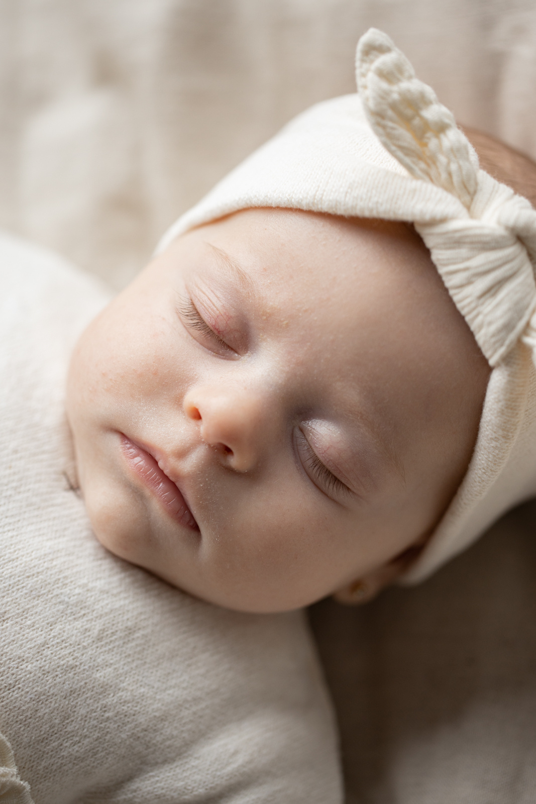 Zachte baby haarband in een prachtige ecru kleur met een knoop detail. One more in the family valt iets kleiner dan normaal. Zie onderaan de pagina een overzicht van de maten.