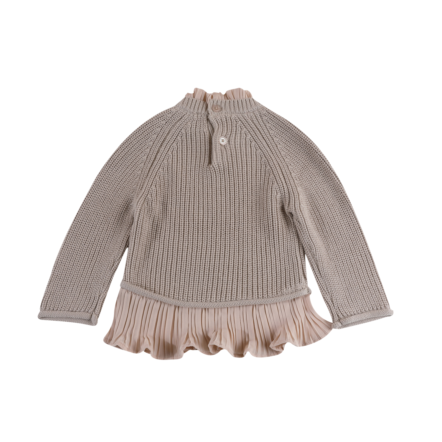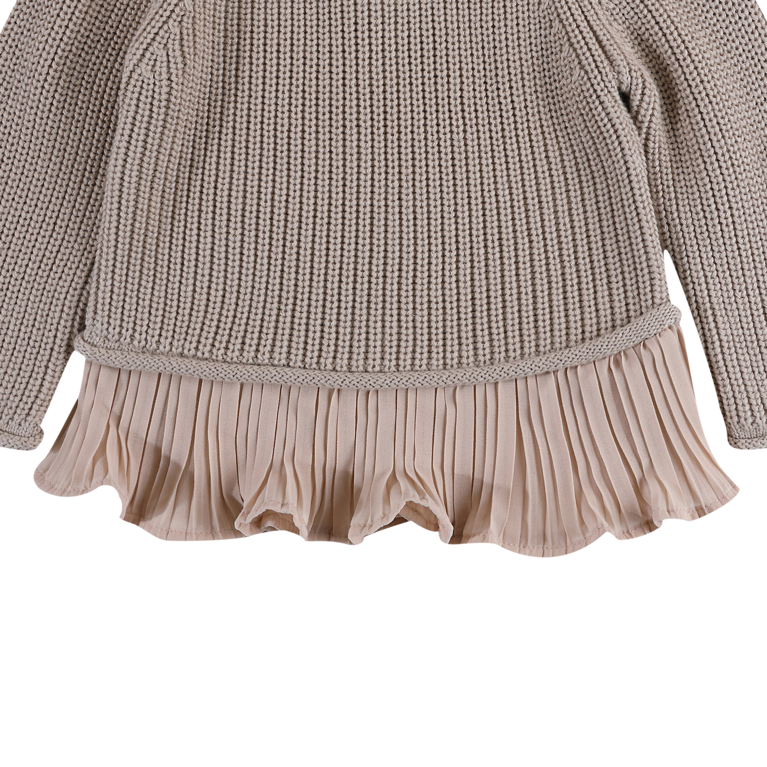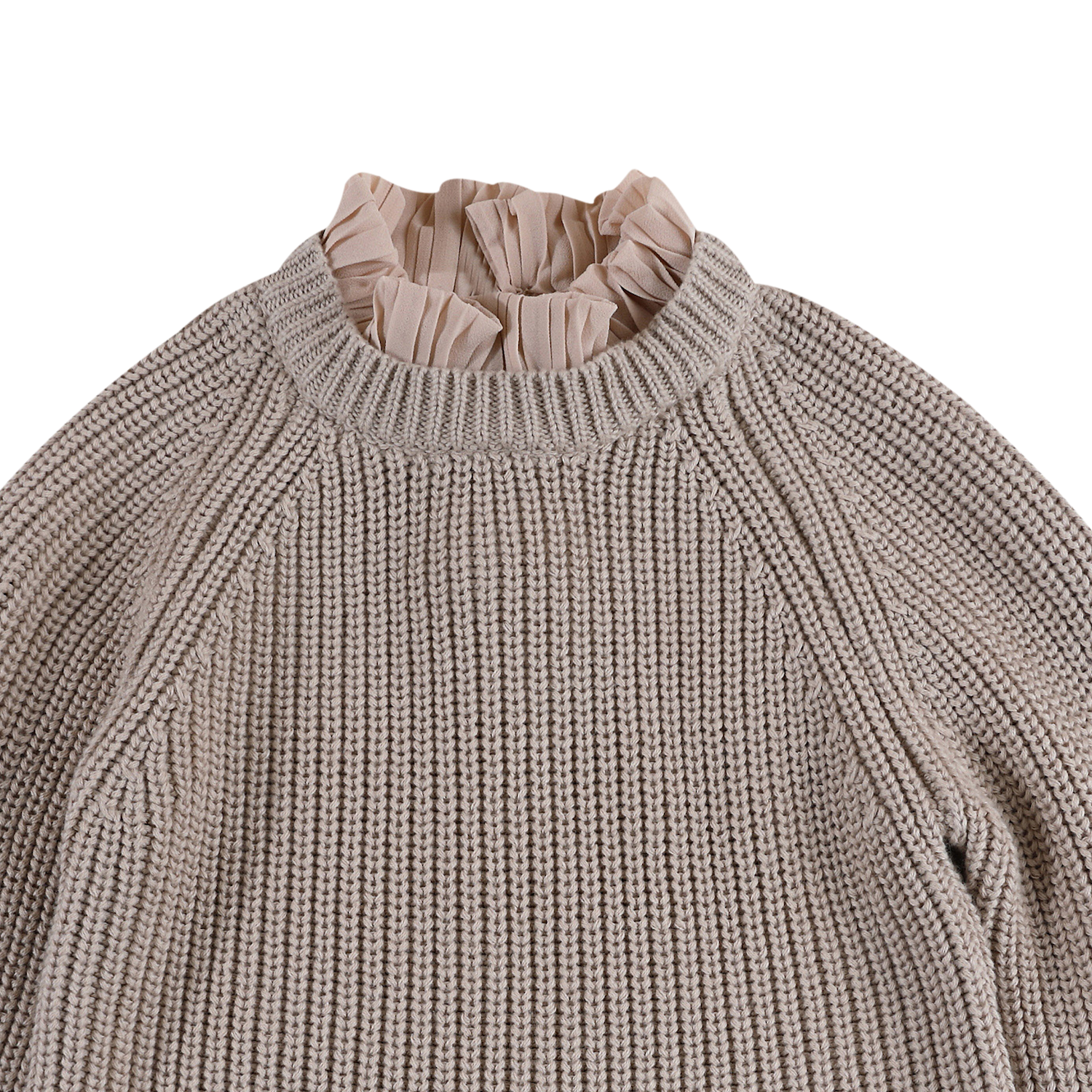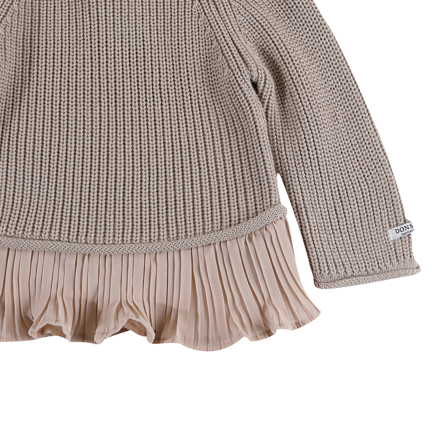 Deze bestseller gebreide trui van Donsje met ruches details aan de onderkant en bij de kraag in een natuurlijk taupe kleur. Lees meer