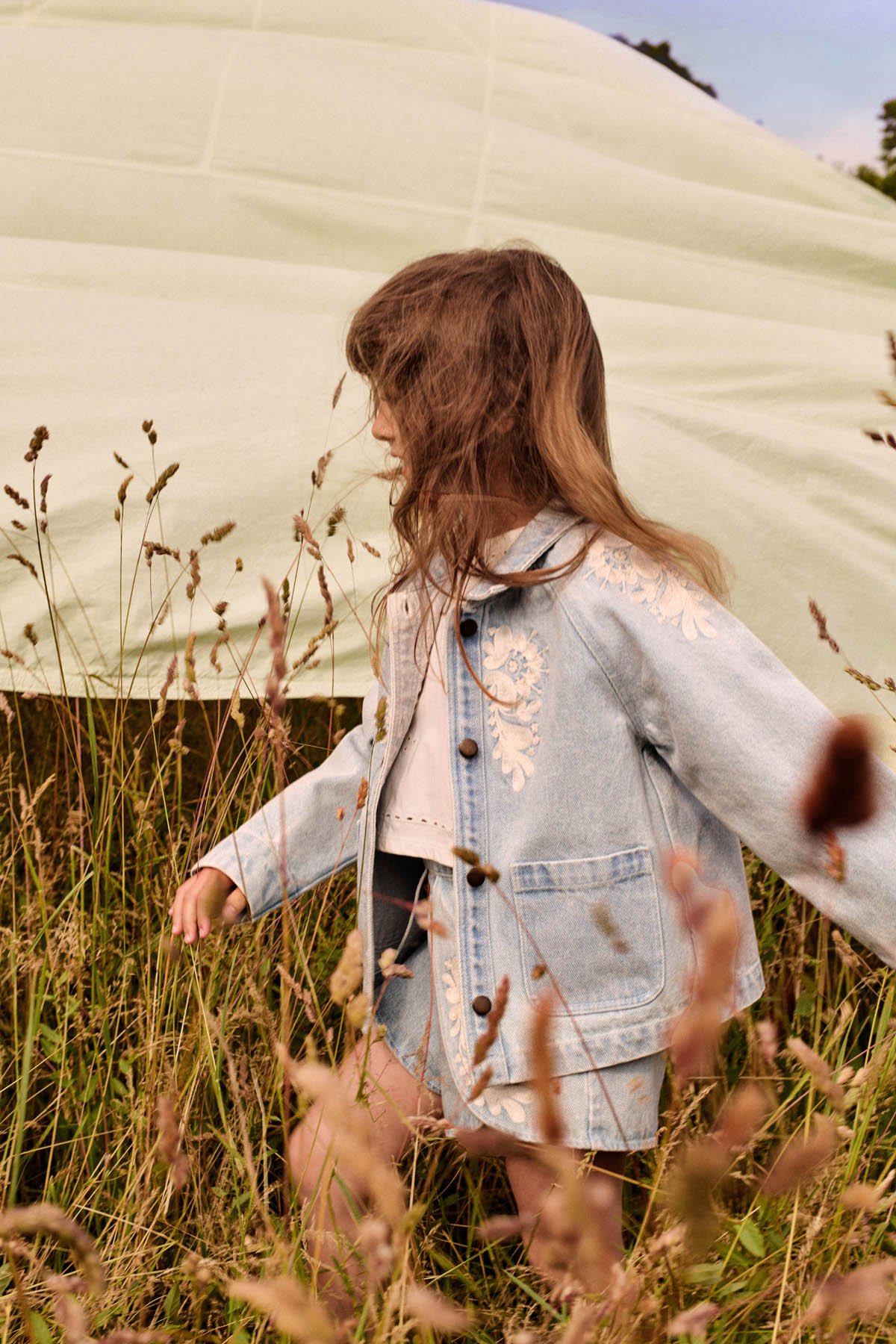 Te gek denim jasje van Louise Misha met bloem borduurwerk. Het rechte oversized model heeft knopen aan de voorkant en 2 steekzakken. Hij is gemaakt van een geweven katoen. Er is ook een bijpassende short! Lees meer