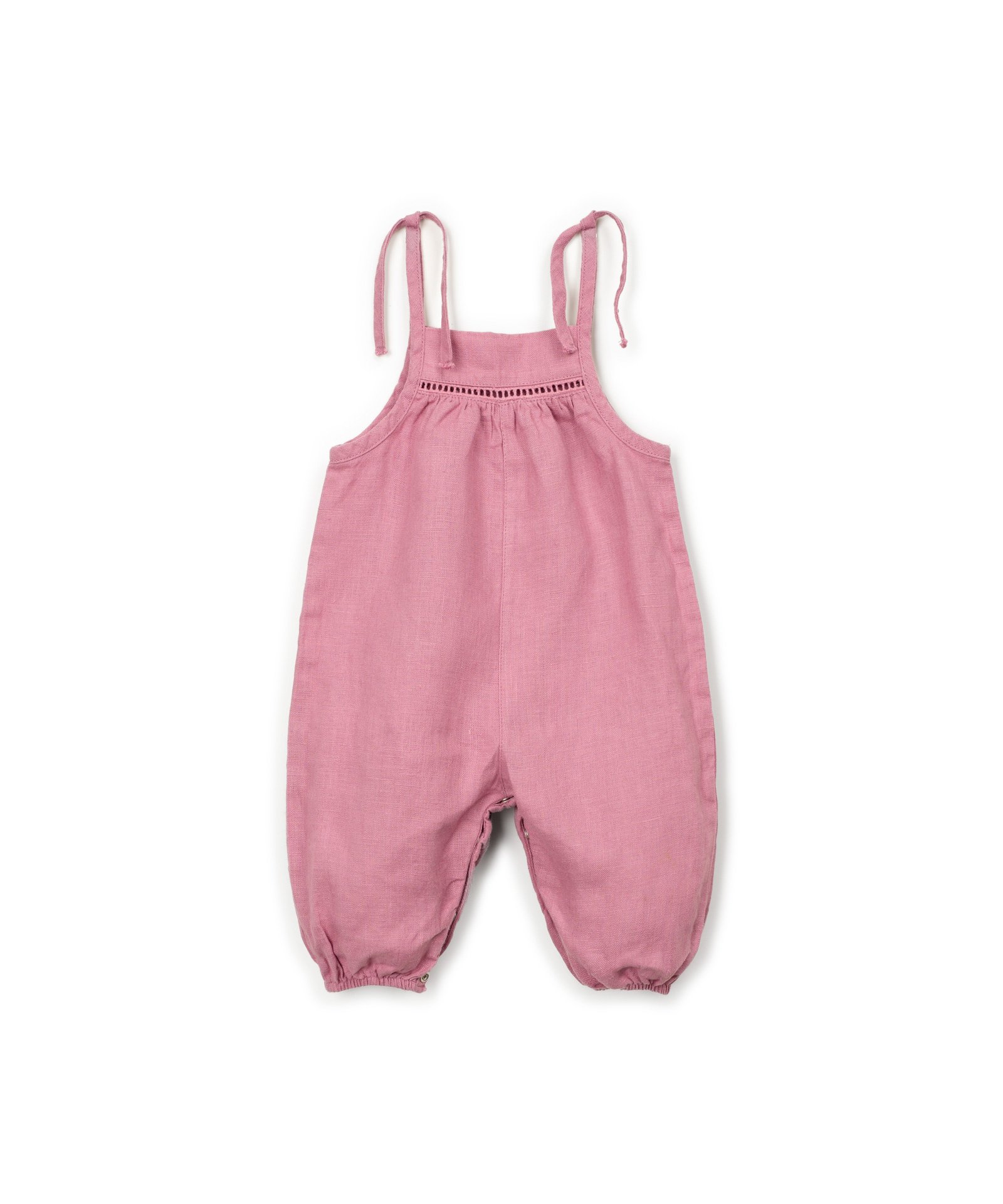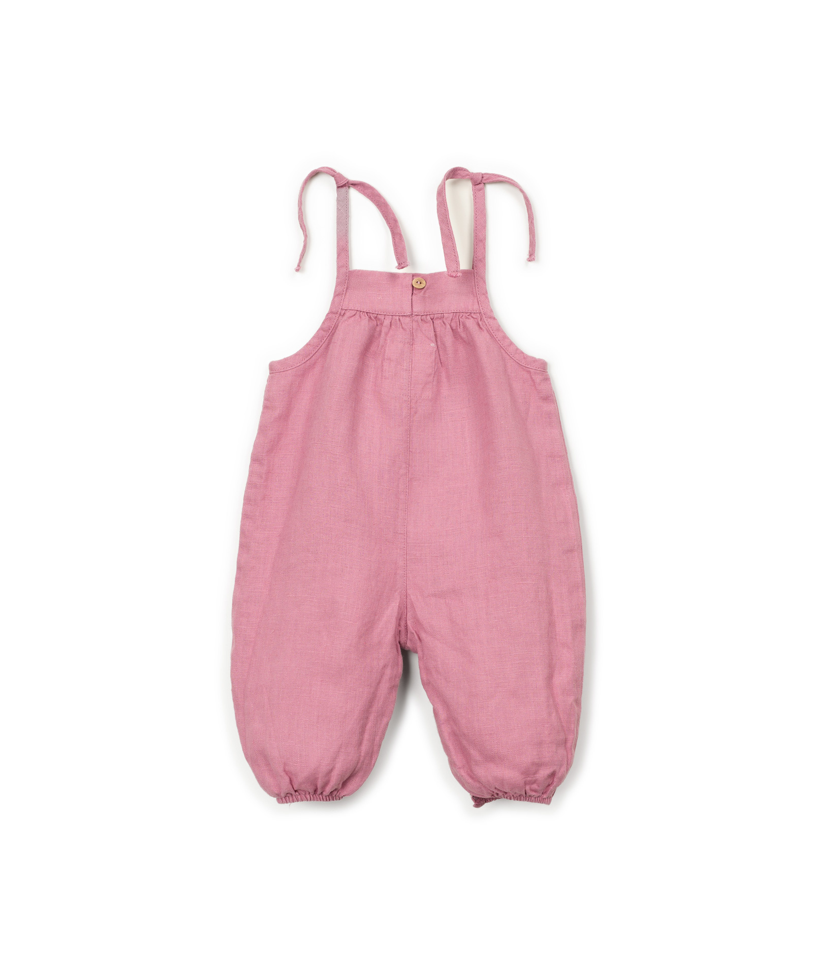 Prachtige linnen jumpsuit van Play Up in een roze kleur. Het relaxte model heeft dunne bandjes om te strikken, een uitgewerkt detail aan de voorkant en een handige sluiting aan de onderkant. Hij is gemaakt van linnen. Zie onderaan de pagina voor een overzicht van de maten.