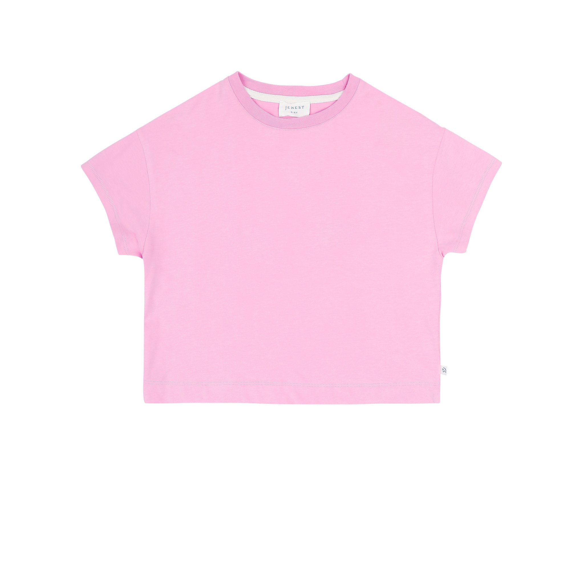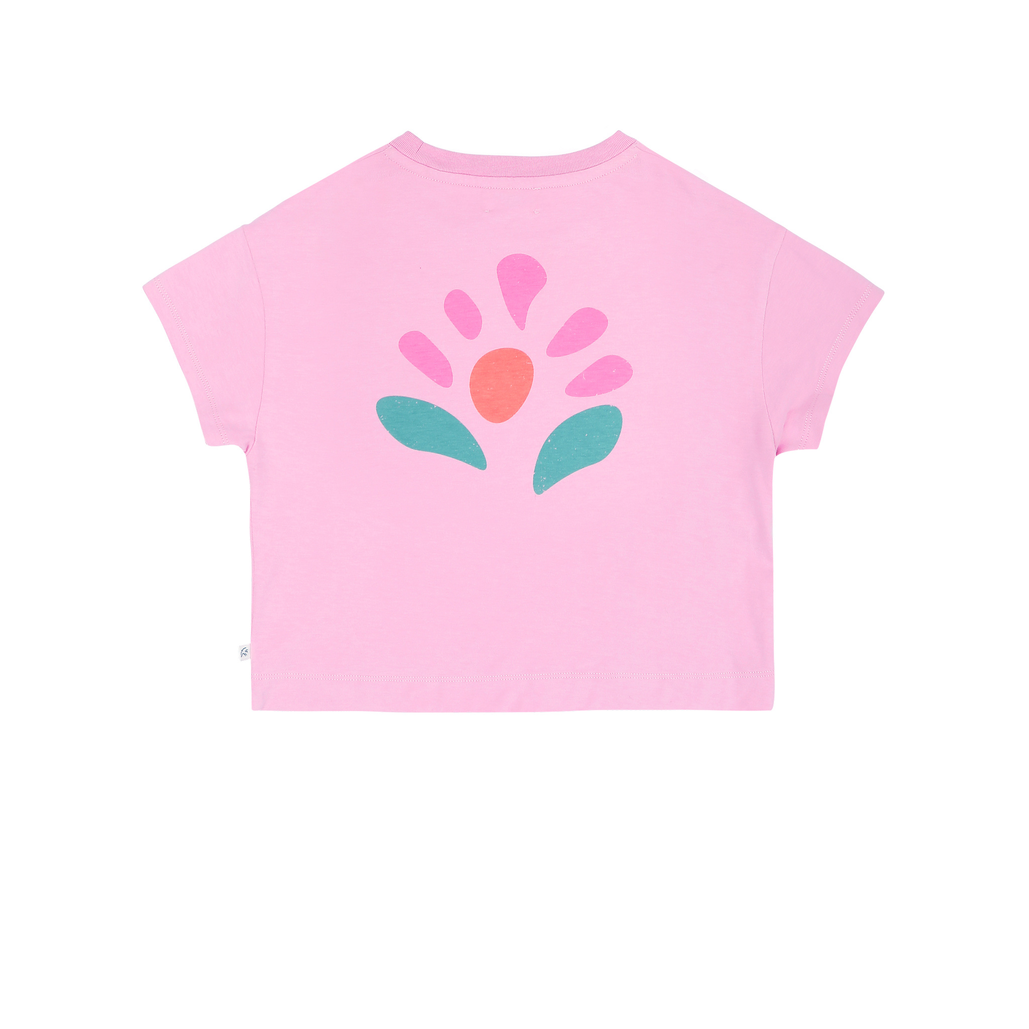 Roze t-shirt van Jenest met kleurrijke print op de rug. Het model heeft een ronde hals en een wijde pasvorm. Hij is gemaakt van organic cotton jersey. Het merk JENEST valt normaal op maat, zie onderaan de pagina voor een overzicht van de maten.