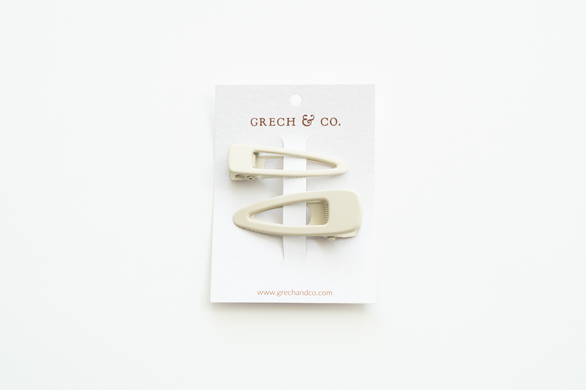 Met deze matte hair clips in de prachtige Buff kleur van Grech & Co maak je elk kapsel compleet. Of je nu dik, dun, krullend of stijl haar hebt. De clips komen in een set van 2 en hebben een afmeting van 6,5 x 1,5 cm.
