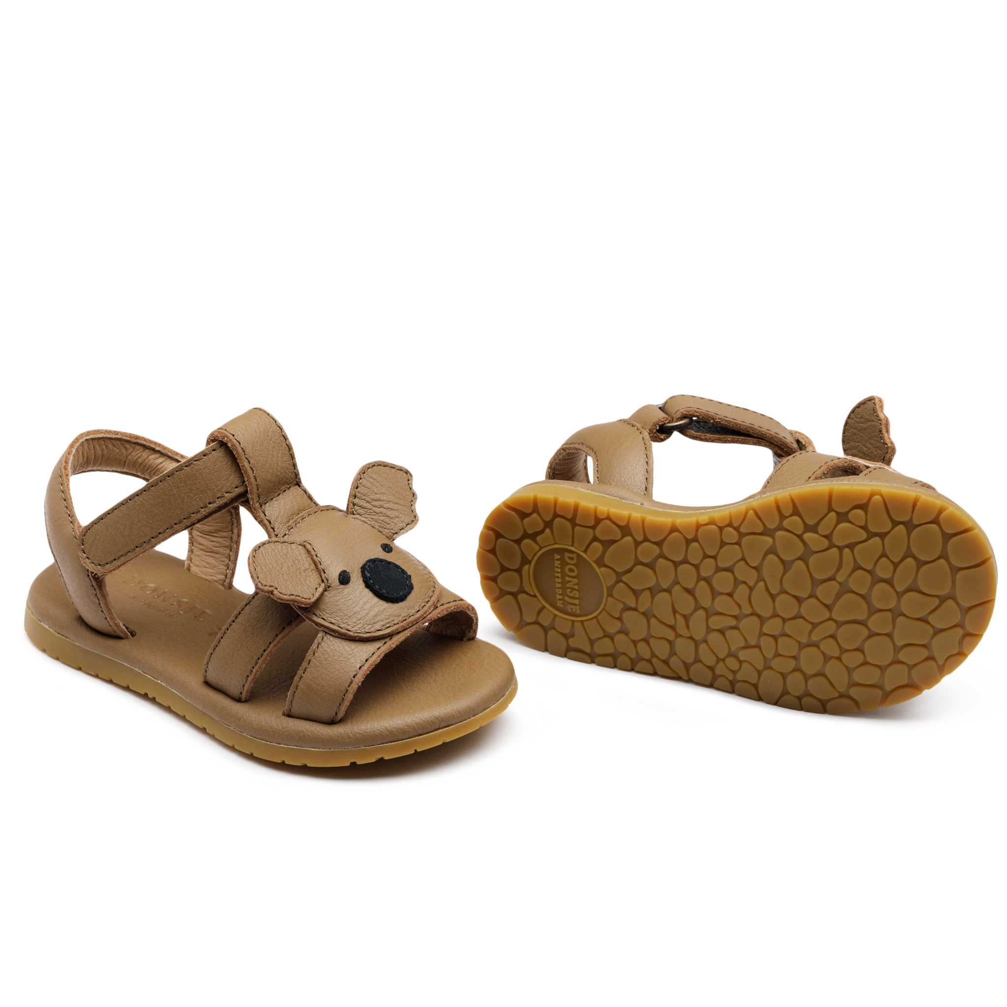 Tijdloos peuter sandaaltje van Donsje in bruin leer met de bekende koala. Het schoentje heeft een handige klittenband sluiting en is gemaakt van een premium kwalitit leer. Ook leuk als cadeau!