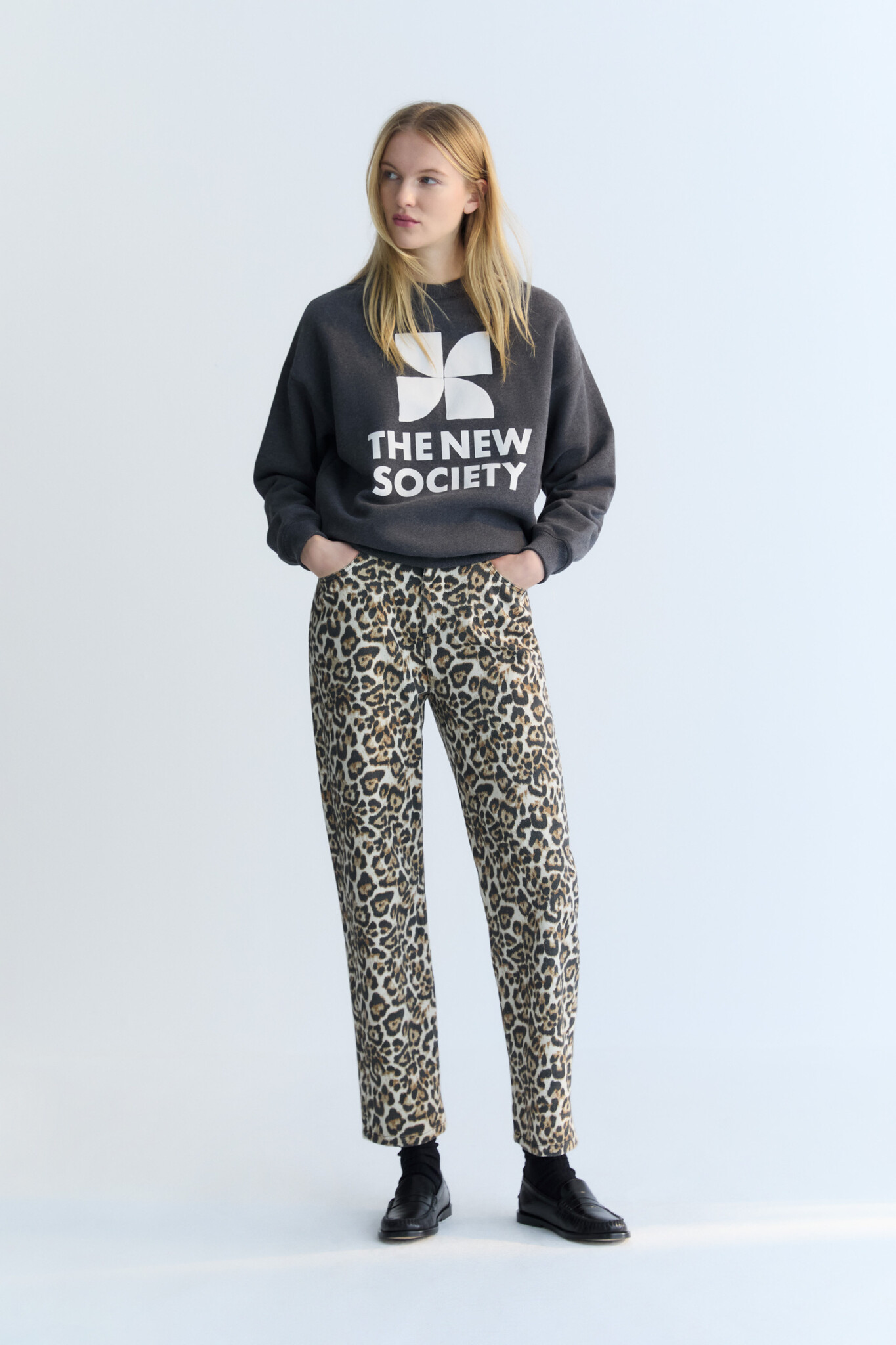 Te gekke denim broek van The New Society voor dames, uitgevoerd in een luipaard print. De Nelia pant heeft een regular fit en draagt comfortabel. Hij is gemaakt van organic cotton. The New Society valt redelijk normaal voor dames, het model is 180cm en draagt een S.