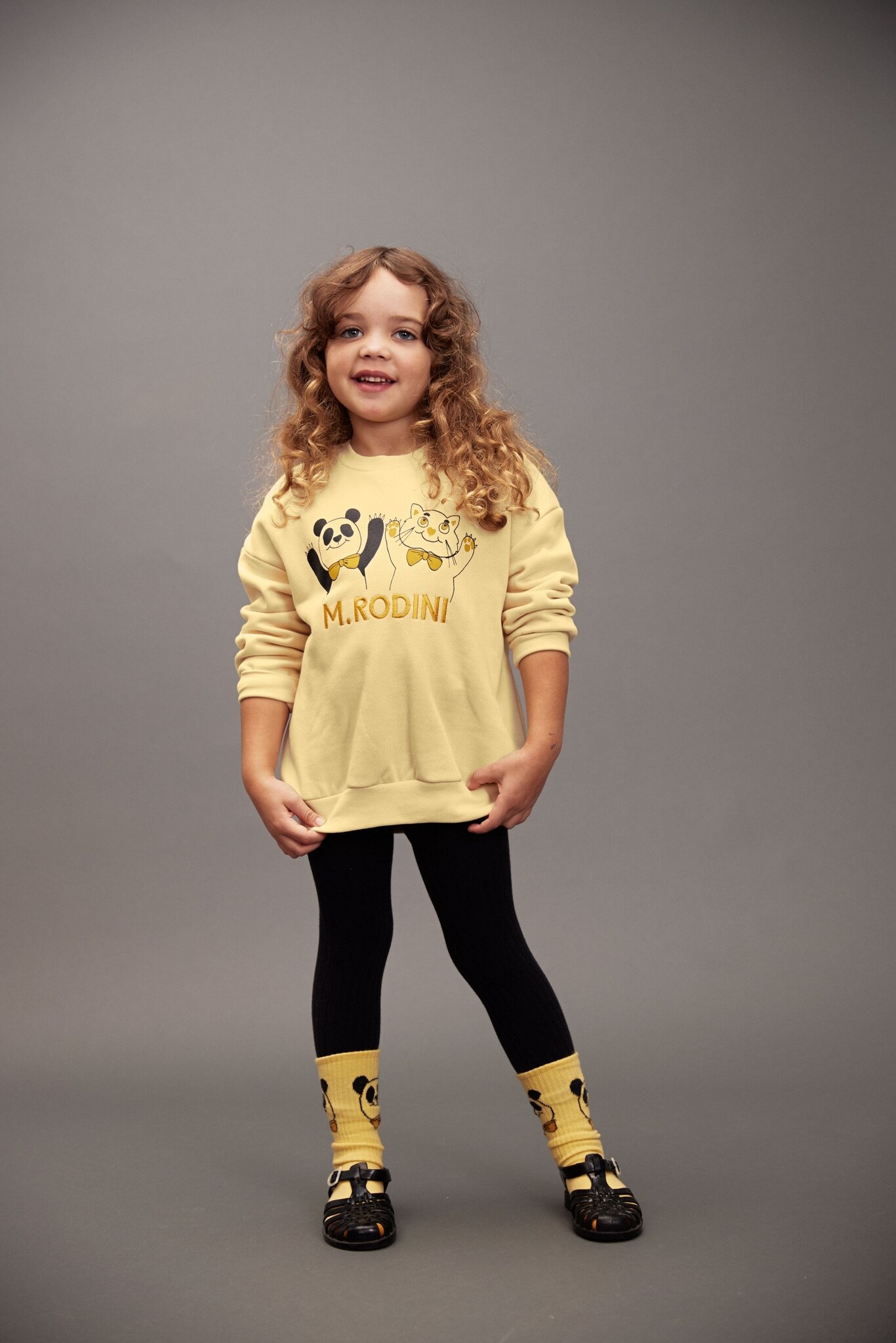 Sweatshirt van Mini Rodini in geel met panda & katten opdruk. De trui heeft een relaxte pasvorm, een ronde hals en geribbelde boorden. Hij is gemaakt van 100% GOTS gecertificeerd organic cotton.