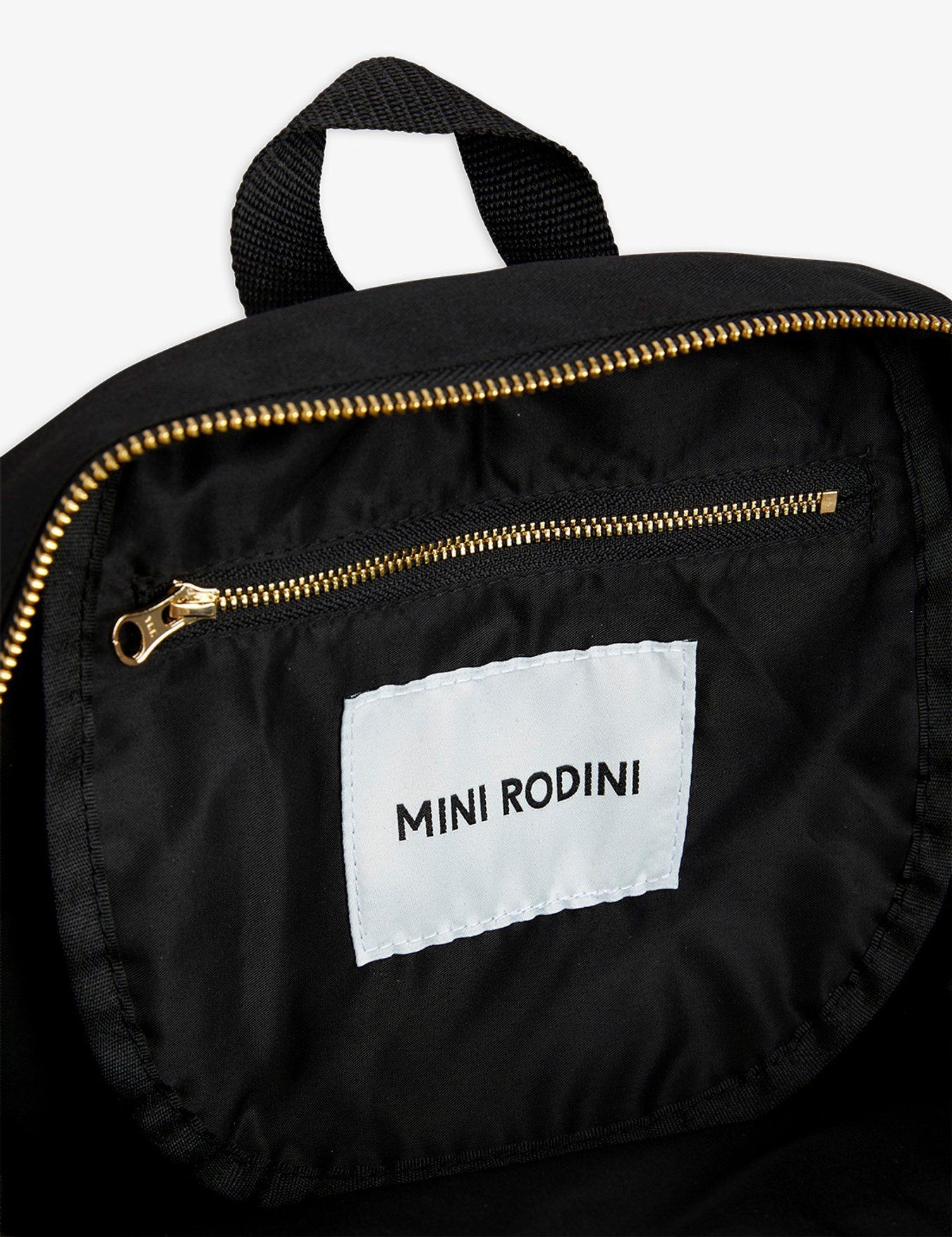 Met deze te gekke rugtas van Mini Rodini steel je de show op het schoolplein. De zwarte backpack heeft een ruim hoofdvak en verstelbare banden. Aan de voorkant vind je de bekende panter patch.