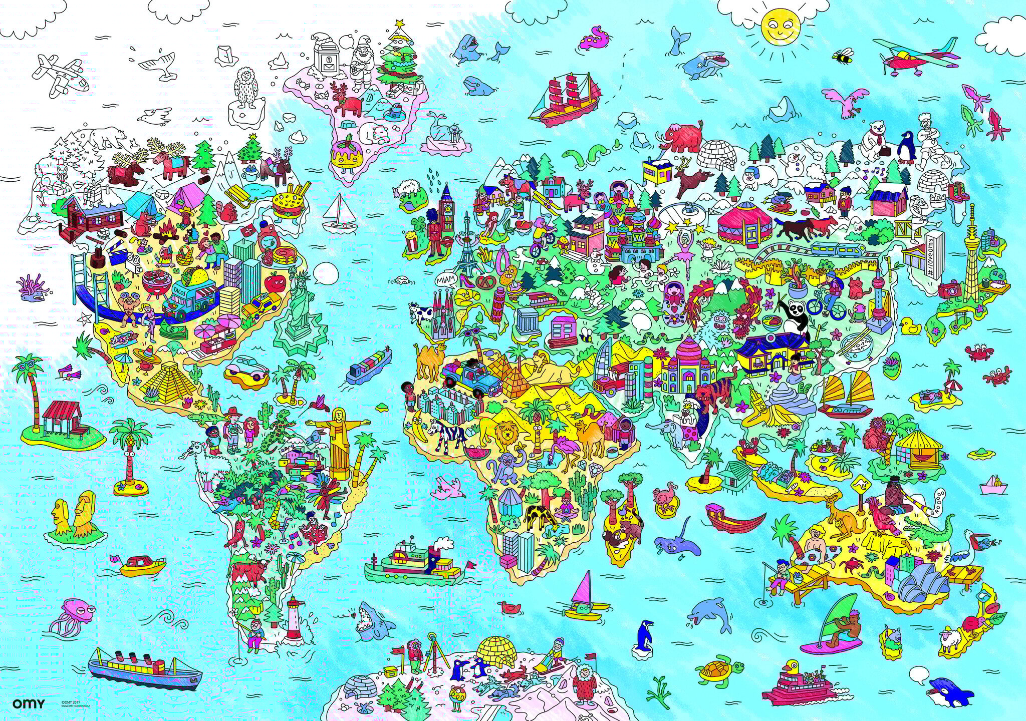 De populaire mega poster van OMY in een werelds thema. Beleef eindeloos kleurplezier met deze indrukwekkende kleurplaat. Leuk om samen te doen of alleen. Hang hem op of lijst hem in. Afmeting: 70 x 100cm. Lees meer