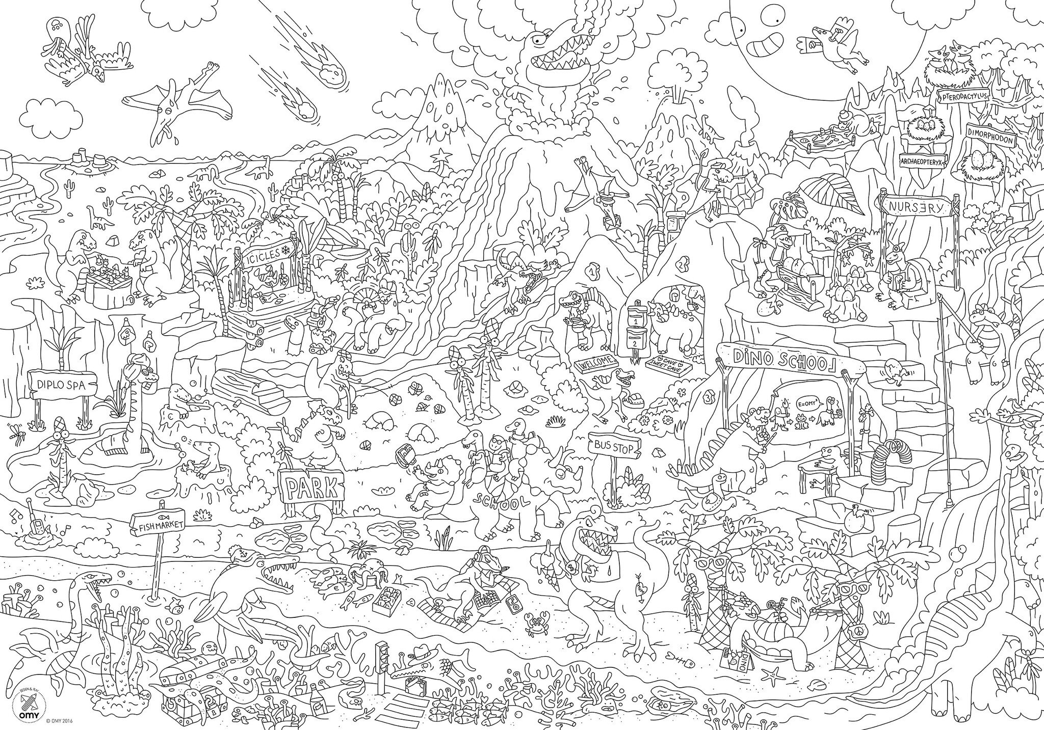 De populaire mega poster van OMY in een dino thema. Beleef eindeloos kleurplezier met deze indrukwekkende kleurplaat. Leuk om samen te doen of alleen. Hang hem op of lijst hem in. Afmeting: 70 x 100cm. Lees meer