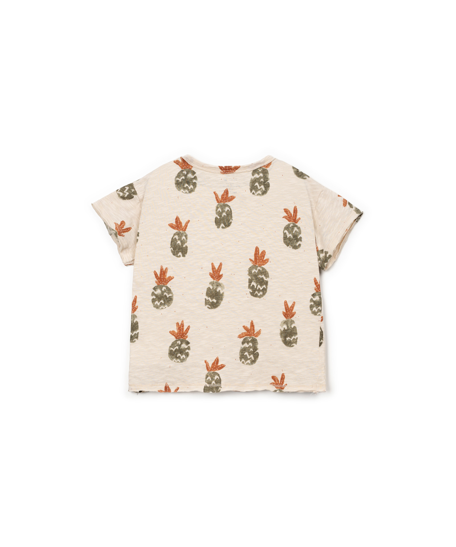 Katoenen t-shirt met groene ananas print van Play Up. Het shirt heeft een ronde hals met een decoratief knoopje en een rechte pasvorm. Hij is gemaakt van orgranic cotton.Zie onderaan de pagina voor een overzicht van de maten.
