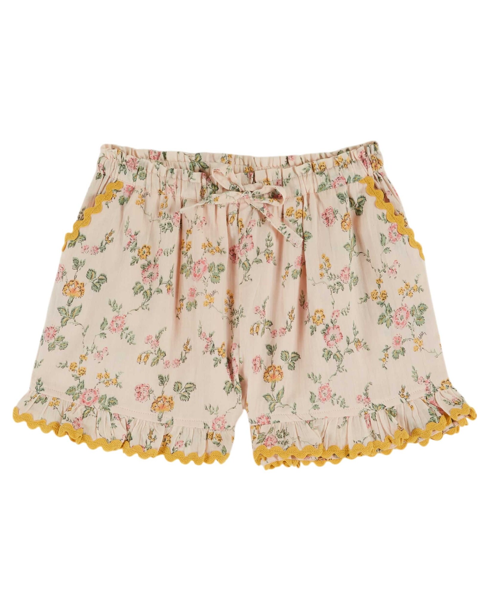 Lieve short van Emile et ida in een vintage bloemenprint. Het korte broekje heeft een elastische taille met koordje, zakken aan de zijkant en geborduurde & geschulpte boorden. Hij is gemaakt van organic cotton. Lees meer