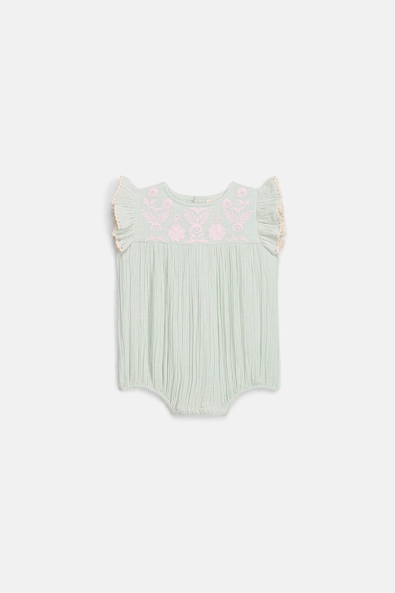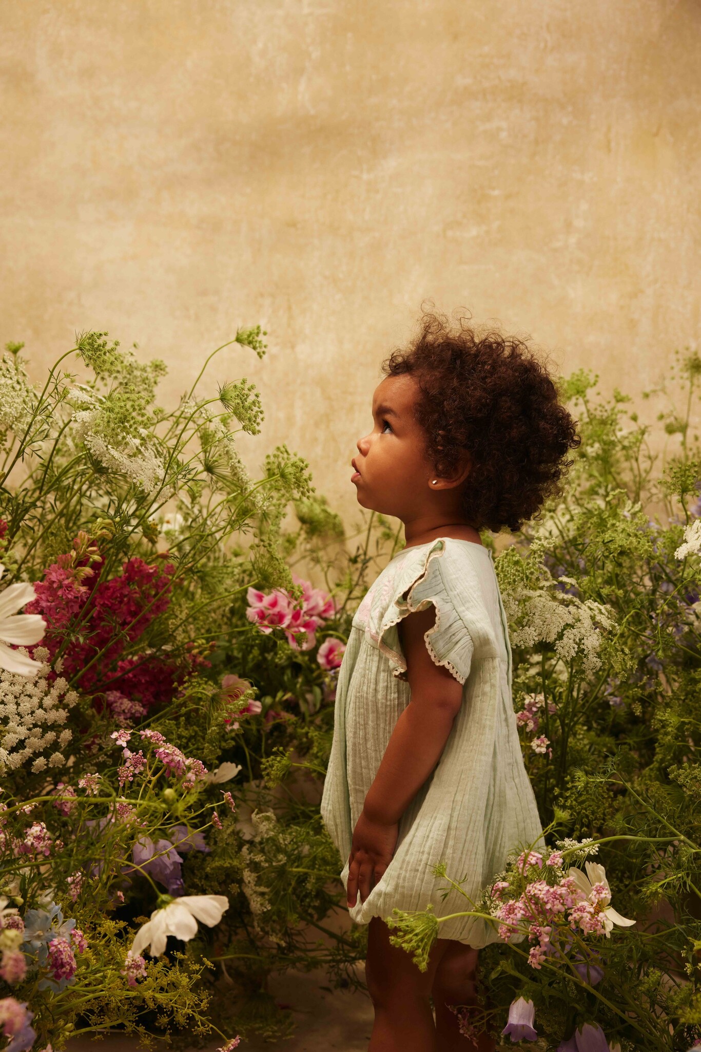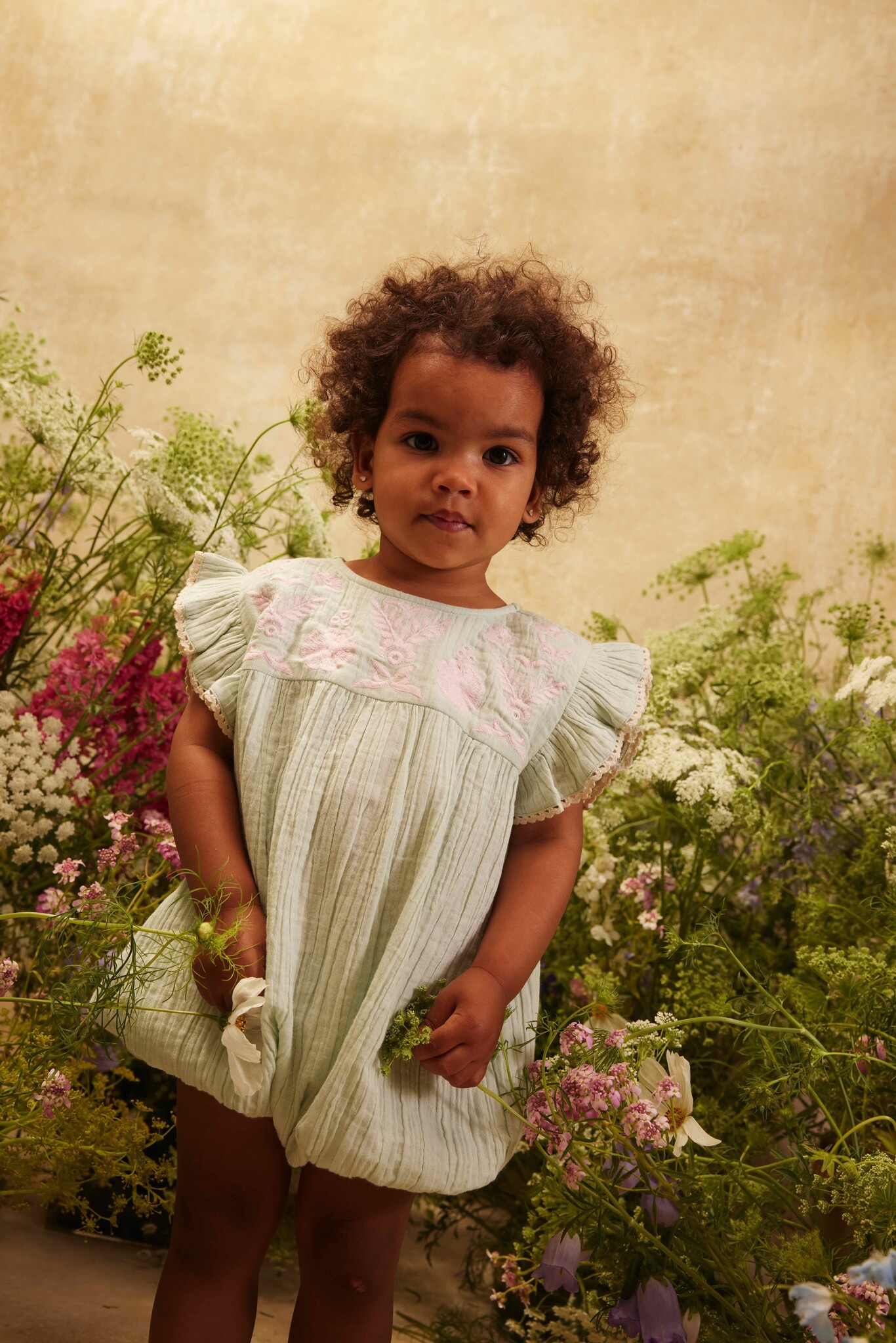 Prachtig klassiek zacht groen baby pakje van Louise Misha met luxe gesmokte en geborduurde details. Hij is gemaakt van een comfortabele luchtige organic cotton. Lees meer