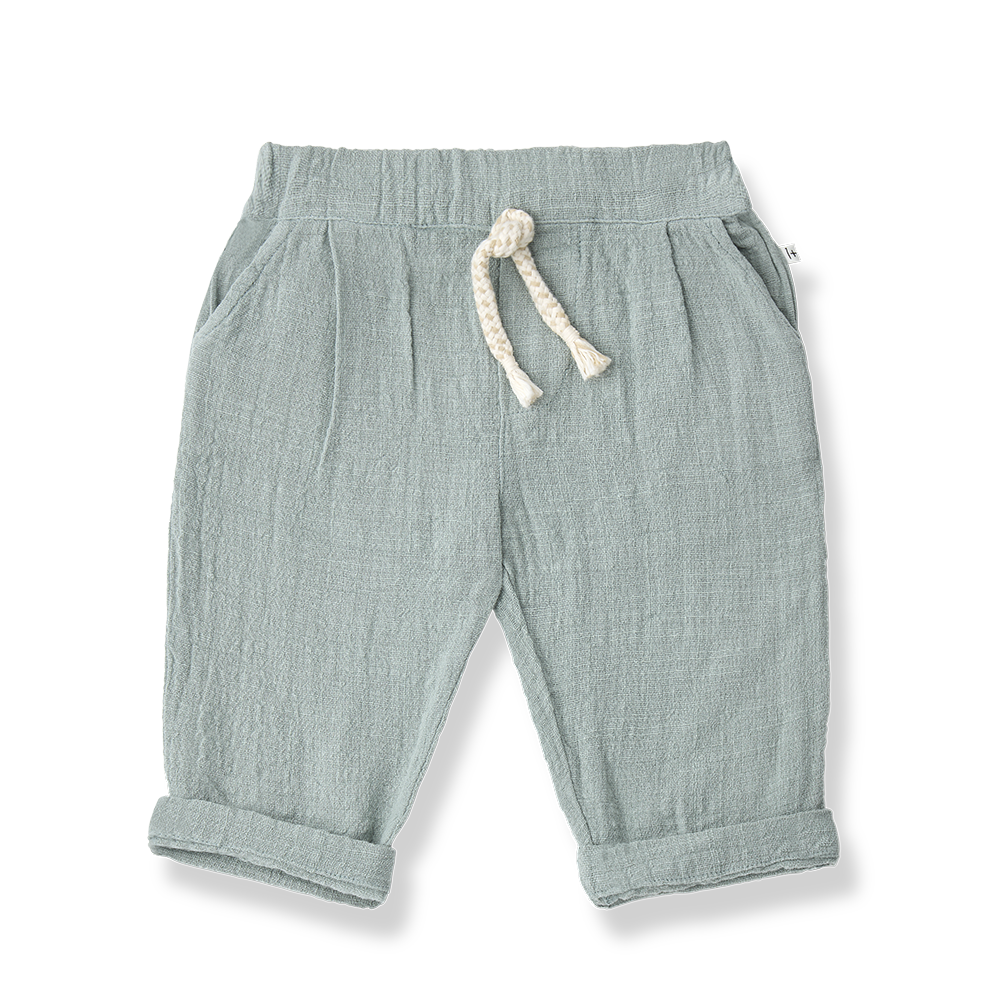 Groen baby broekje van 1 + in the family met een decoratief zakje aan de achterkant. Het relaxte model heeft een elastische taille met decoratief koordje. Hij is gemaakt van een zachte organic cotton. Lees meer