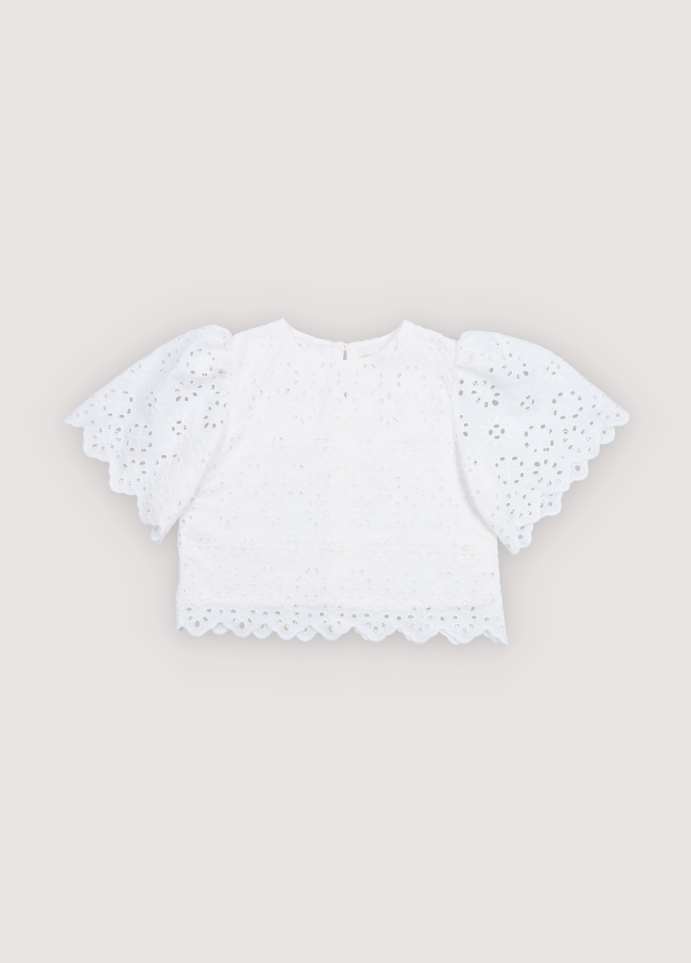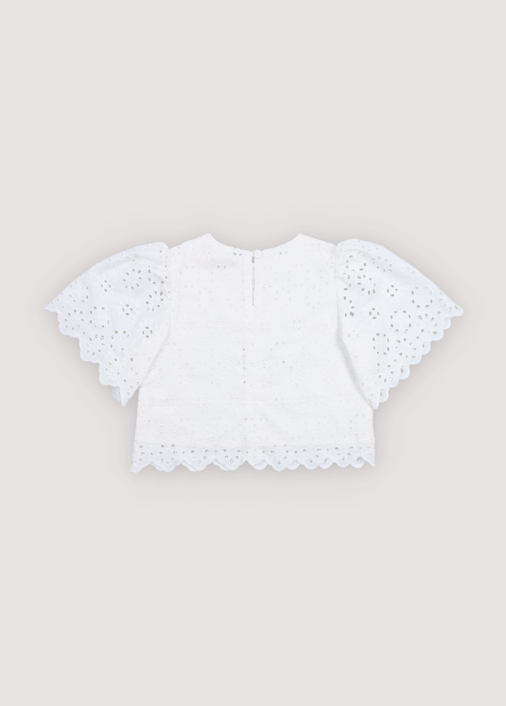 Korte witte blouse met opengewerkte details