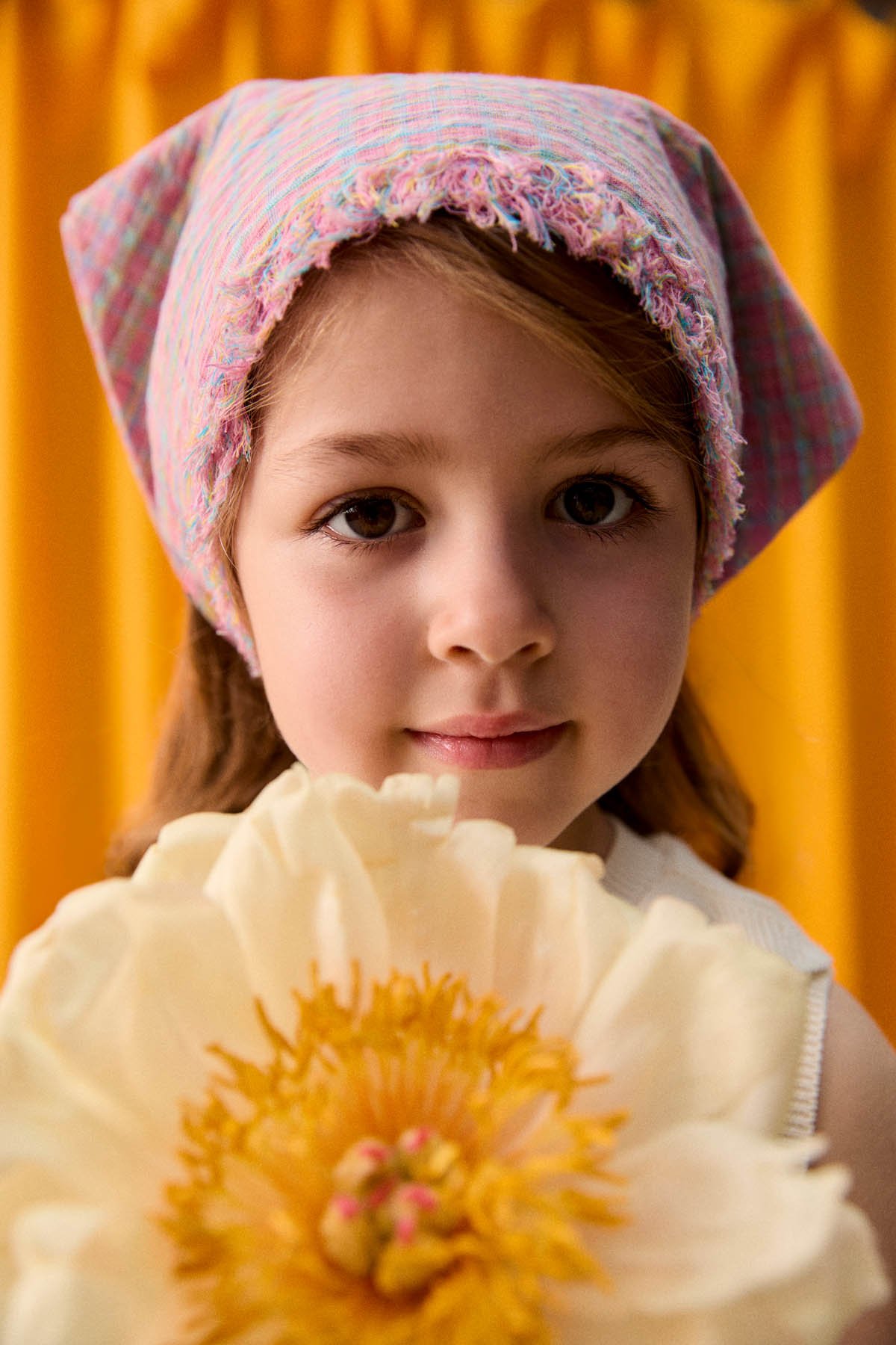 Prachtige sjaal in een de 'Pink Pomelo Checks' roze ruit. Leuk als accessoire om de hals, in het haar of aan een tas. Hij is gemaakt organic cotton. Louise Misha valt klein tot normaal zie onderaan de pagina voor een overzicht van de maten.