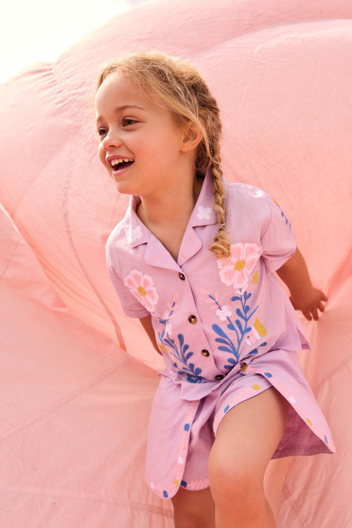 Te gekke short van Louise Misha in een paarse kleur met geborduurde details. Het korte model met elastische taille heeft een overslag effect en kleurrijke bloemdetails langs de randen. Er is ook een bijpassende top en hij is gemaakt van organic cotton. Lees meer