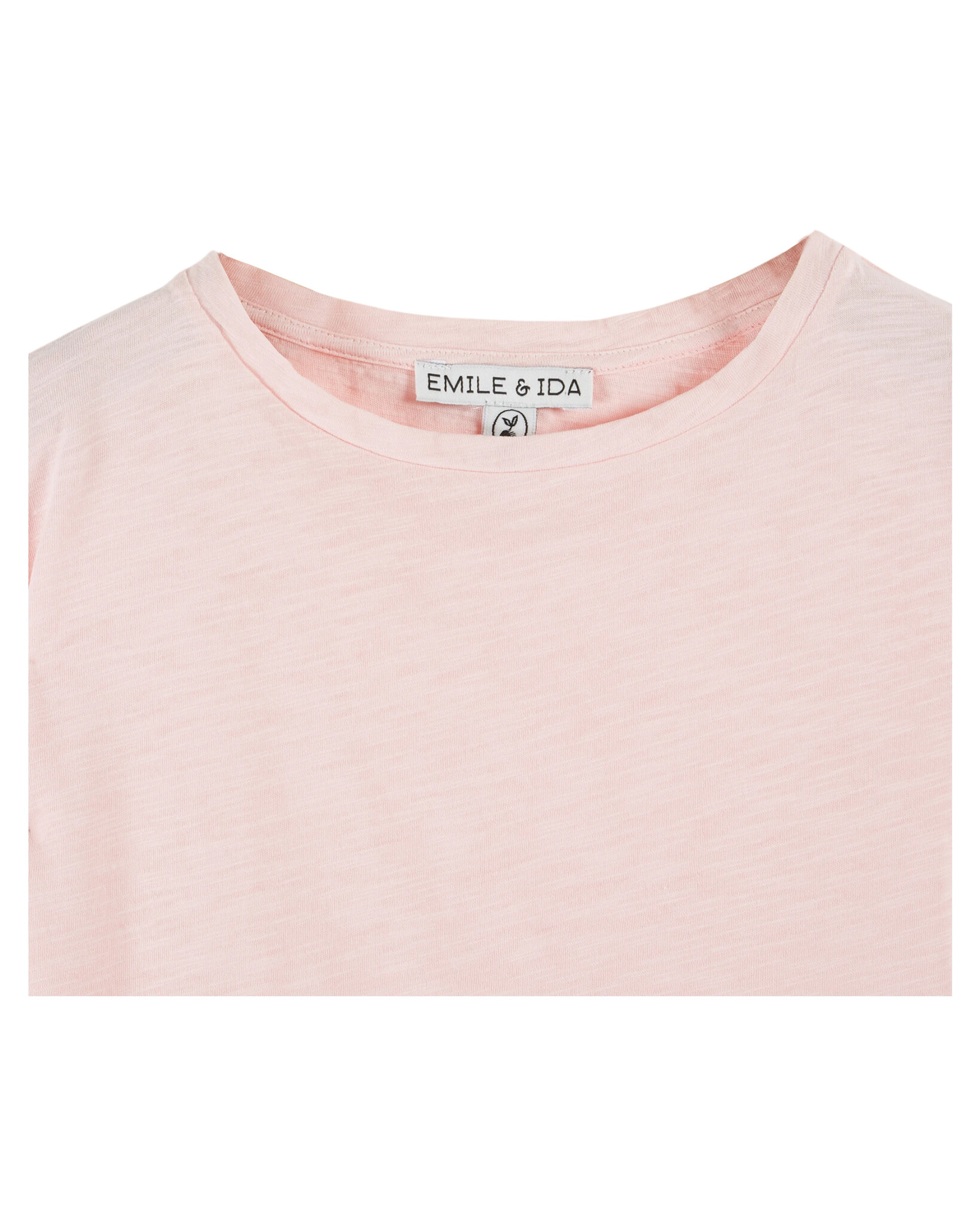 Lief t-shirt van Emile et ida in een licht roze kleur met ruffle mouwtje. Het rechte model heeft een ronde halslijn en is gemaakt van een fijne organic cotton. Lees meer