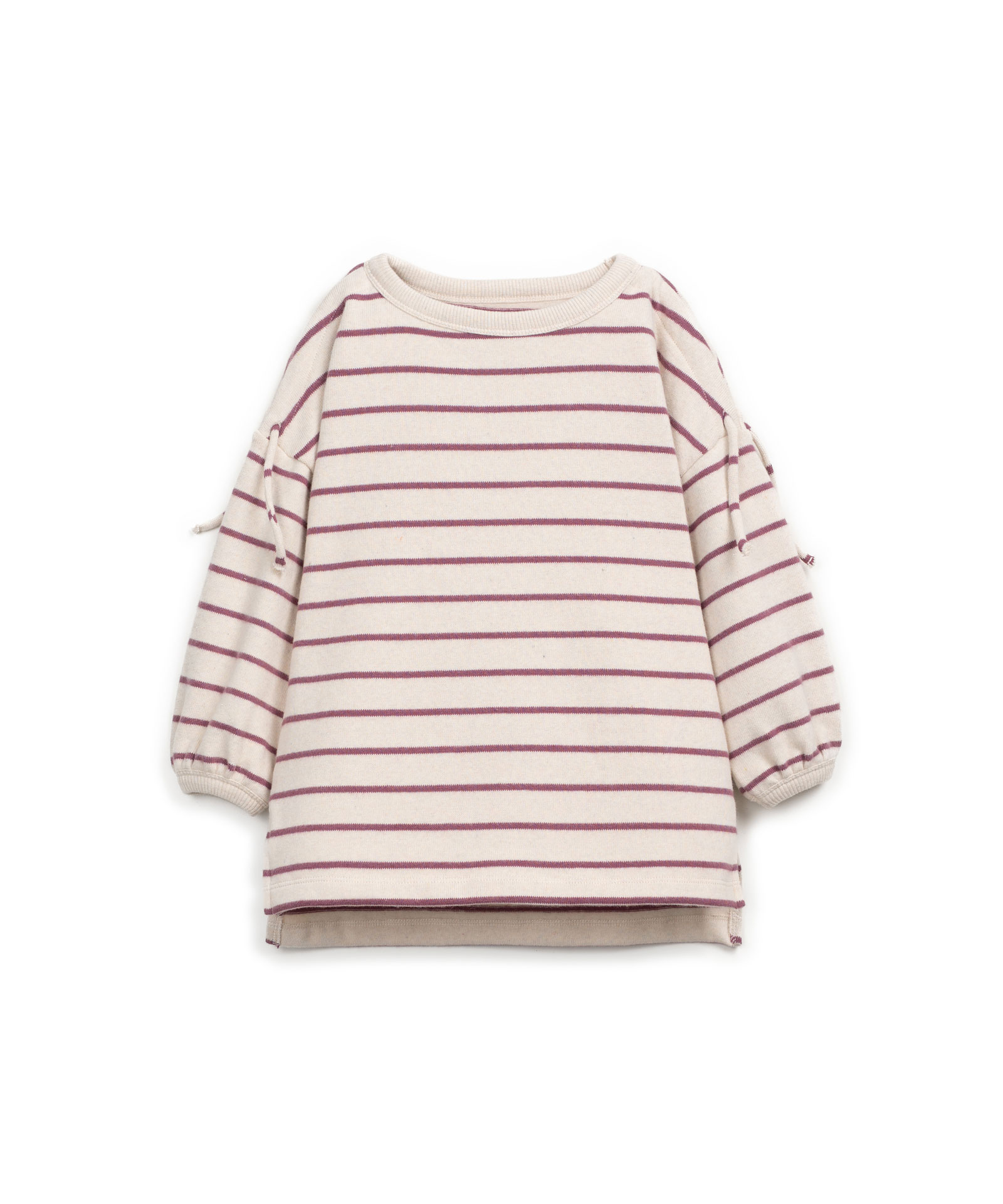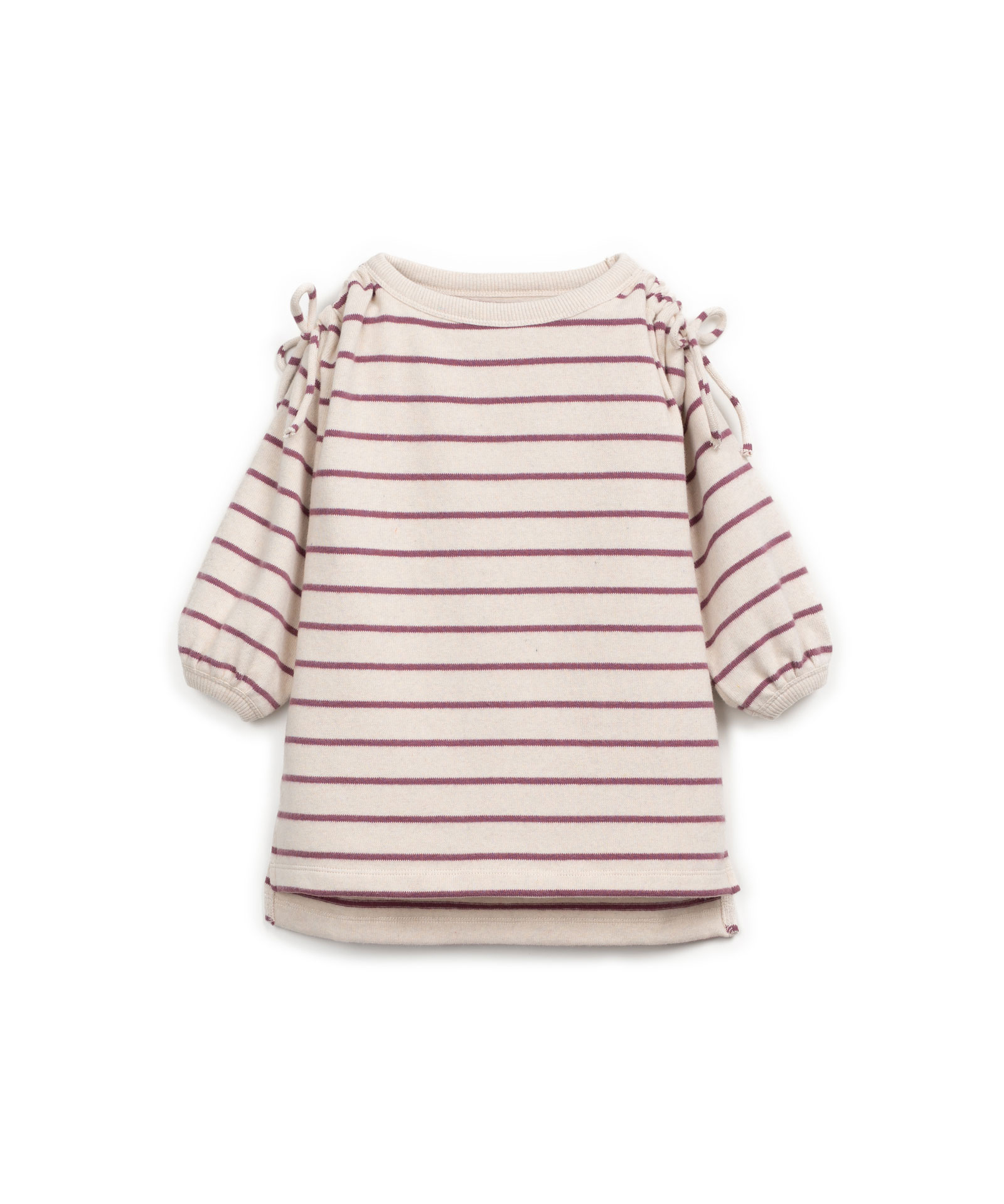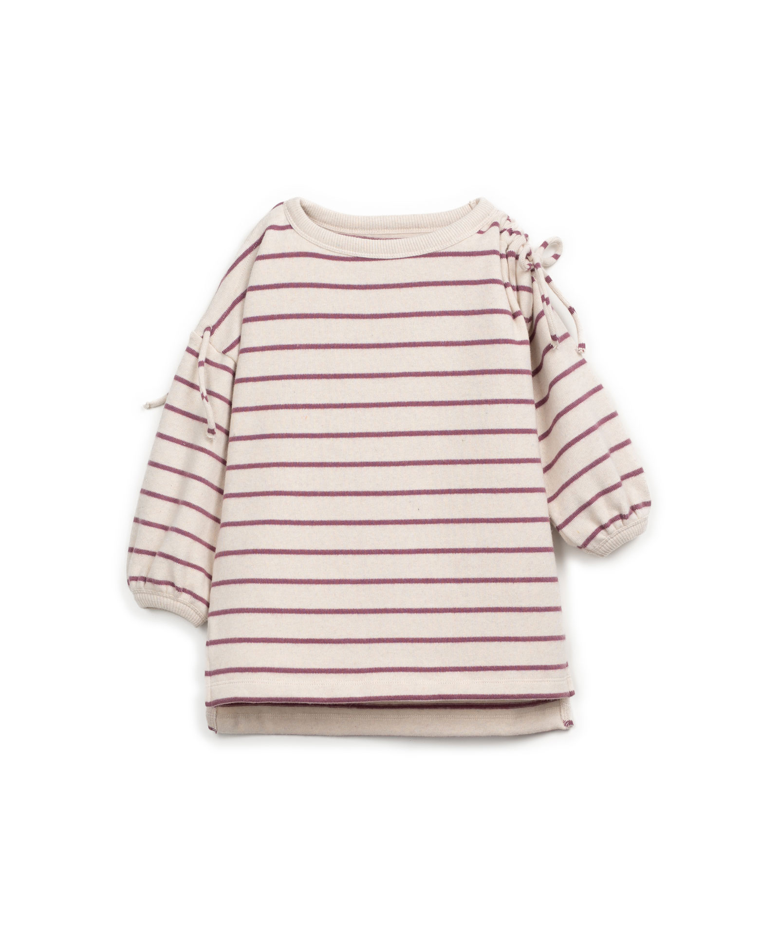 Zachte trui jurk van Play Up voor kids tot en met 12 jaar in een paarse streep. Het relaxte model heeft een ronde hals, geribbelde boorden en een mouw detail. Hij is gemaakt van gerecycled katoen. Lees meer
