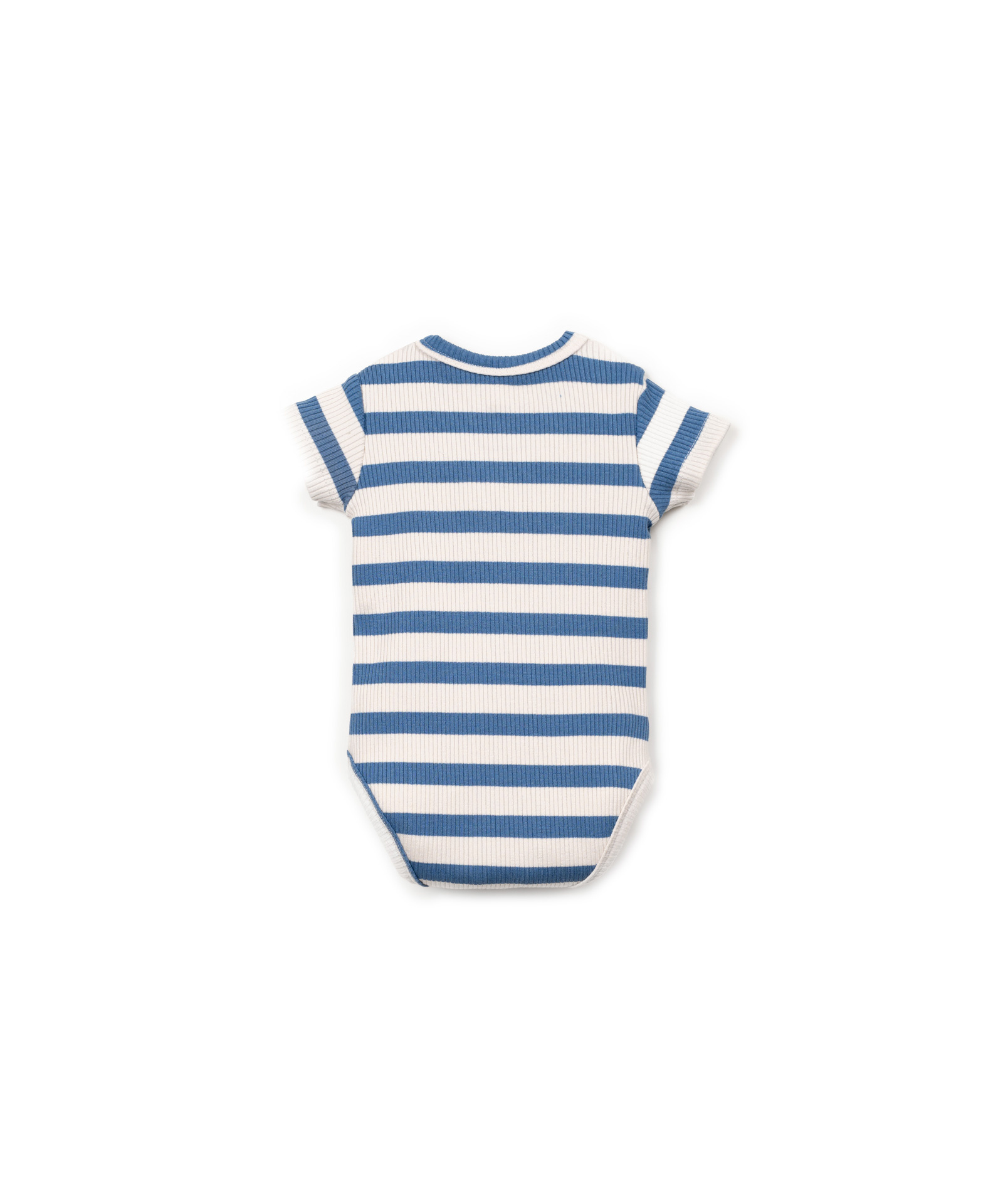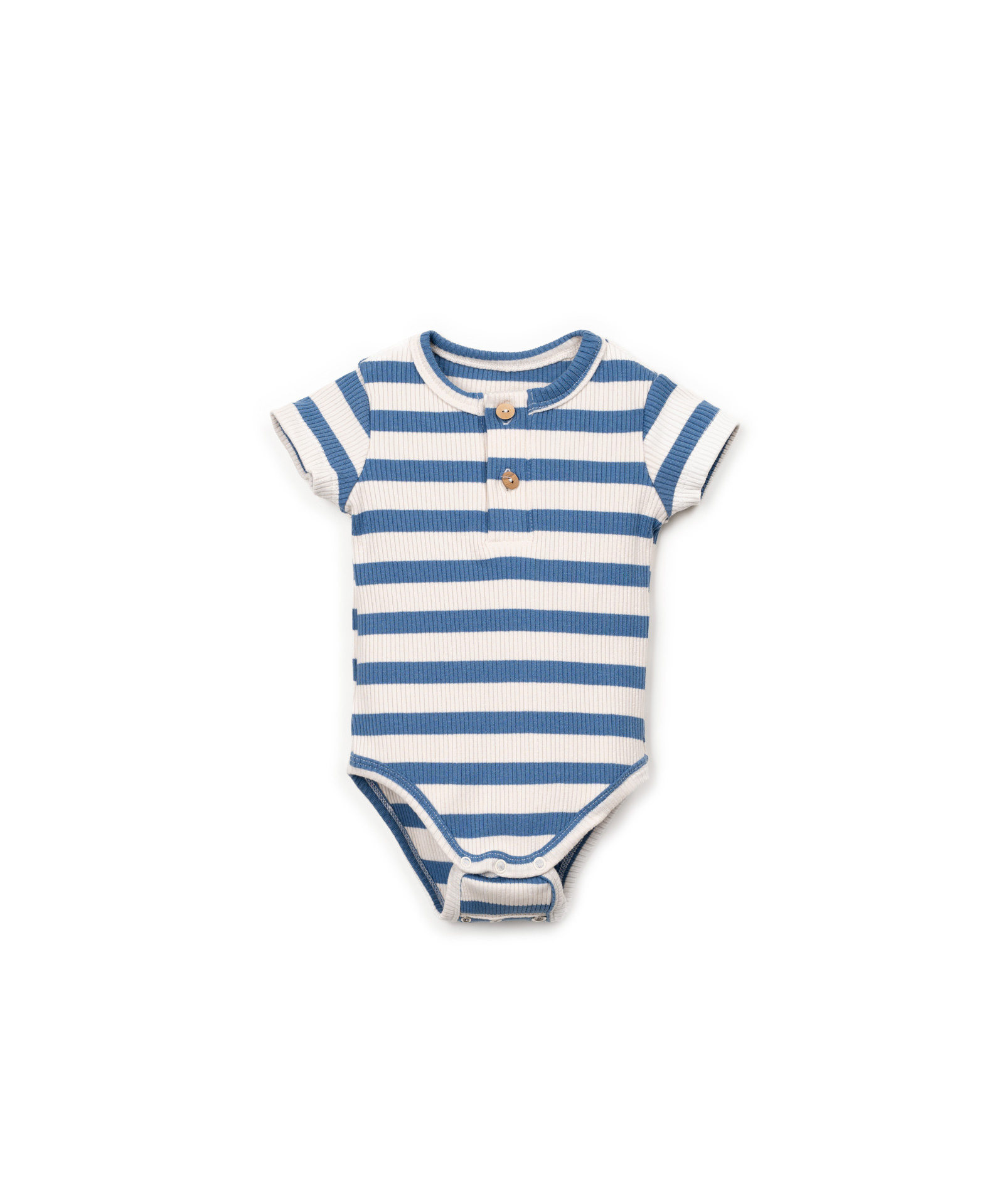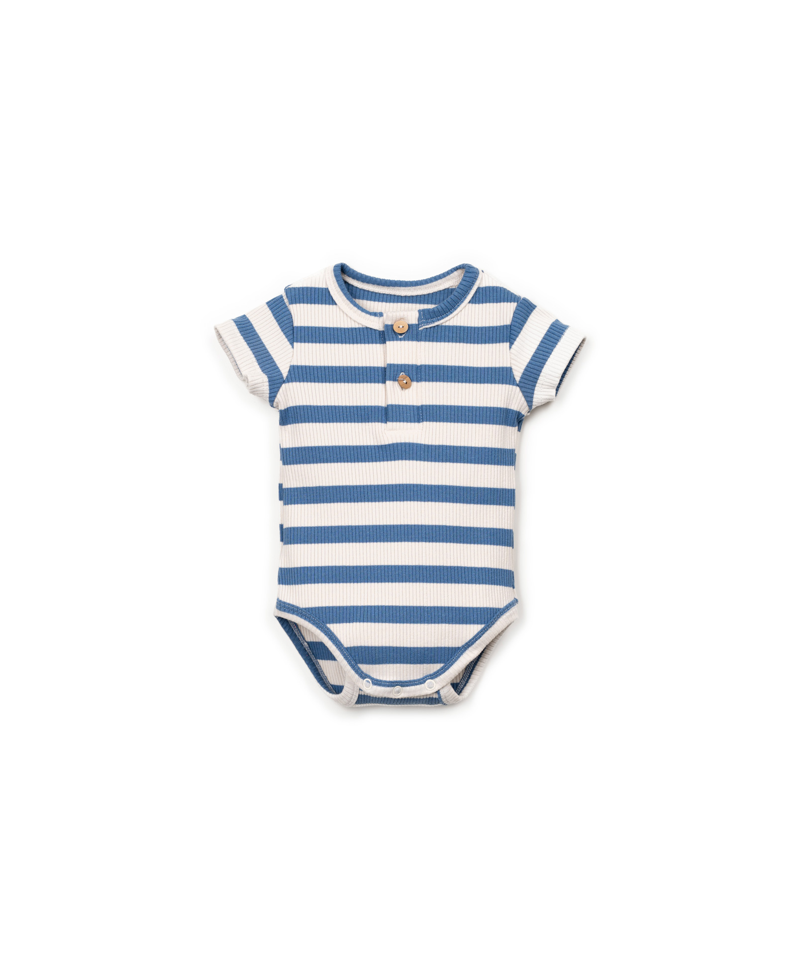 Zomerse rib romper van Play Up in een blauwe streep. Het model heeft korte mouwen en knoopjes aan de voorkant. Hij is gemaakt van een duurzaam materiaal. Zie onderaan de pagina voor een overzicht van de maten.