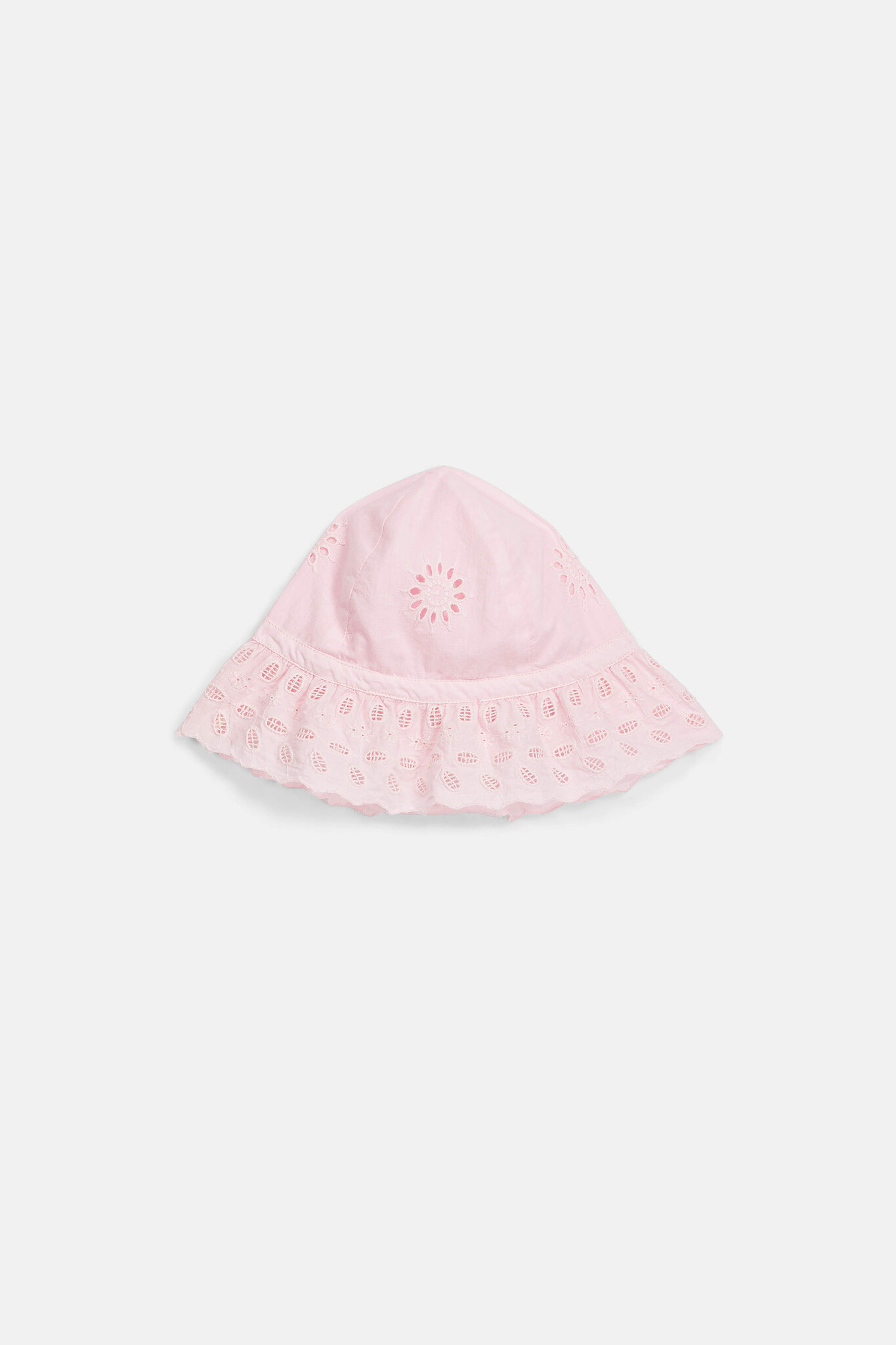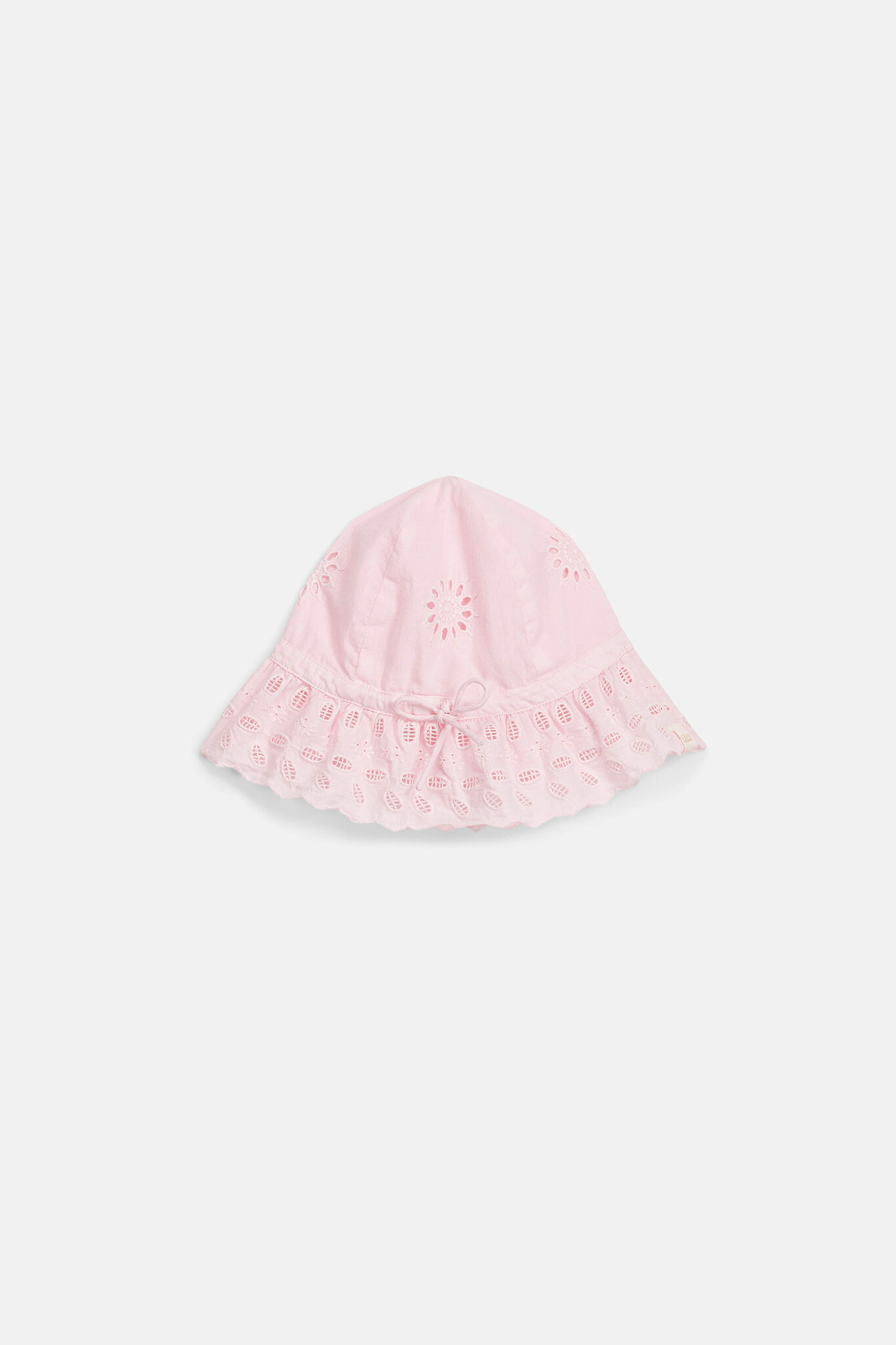 Prachtig licht roze zonnehoedje van Louise Misha met opengewerkte details en geschulpte randen. Het elegante model is voorzien van een geintegreerd koordje om het hoedje kleiner te maken. Hij is gemaakt van organic cotton. Lees meer