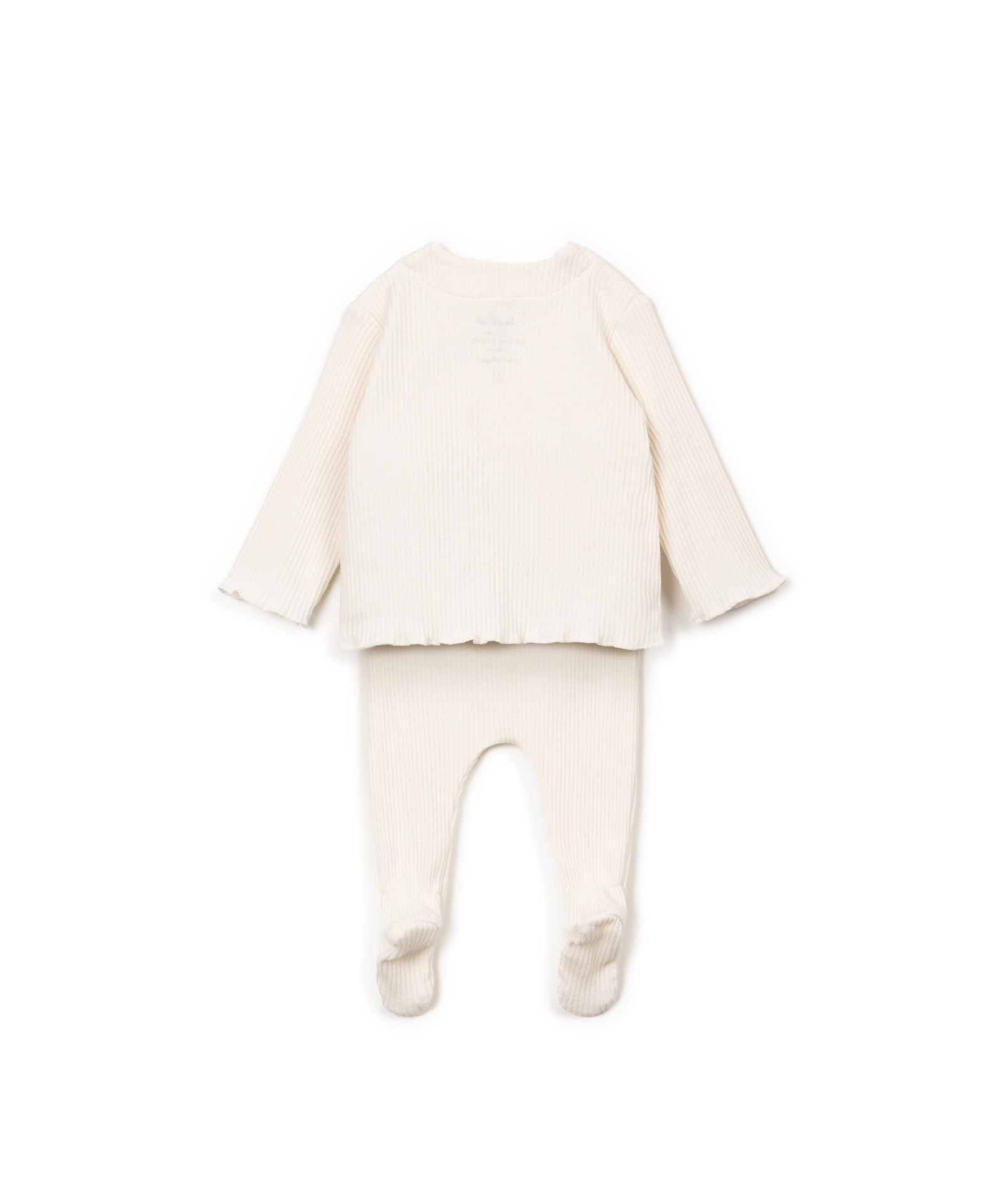 Het ultieme baby setje van Play Up in een natuurlijke créme kleur. De set bestaat uit een broekje met voetjes en een overslag top. Hij is gemaakt van organic cotton in fijne ribstructuur. Lees meer