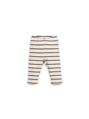 Zachte bruine legging van Play Up in een lichte streep voor baby's tot en met 2 jaar. Het relaxte model heeft een elastische taille en een decoratief knoopje. Hij is gemaakt van gerecycled katoen.