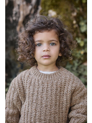 Prachtige grof gebreide trui van Play Up in een licht bruine kleur voor baby's tot en met 3 jaar. Het relaxte model heeft een ronde hals en geribbelde boorden. Hij is gemaakt van wol en gerecyclede materialen.