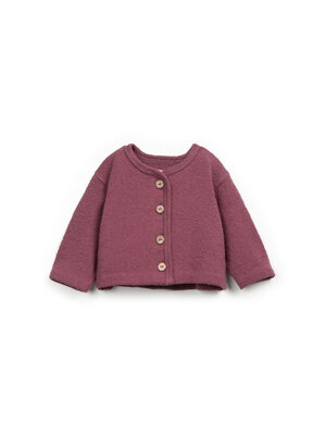 Tijdloos vest van Play Up voor baby's tot en met 3 jaar in een warme paarse kleur. Het relaxte model heeft een ronde hals en knoopjes aan de voorkant. Hij is gemaakt van organic & gerecycled katoen.
