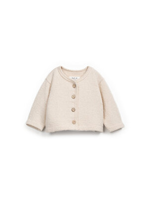 Tijdloos vest van Play Up voor baby's tot en met 3 jaar in een neutrale ecru kleur. Het relaxte model heeft een ronde hals en knoopjes aan de voorkant. Hij is gemaakt van organic & gerecycled katoen.