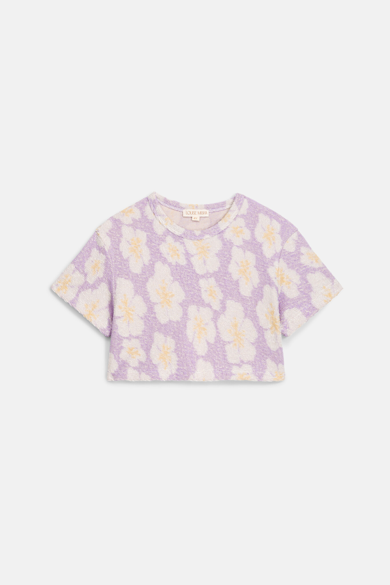 Toffe korte badstof top van Louise Misha in een licht paarse bloemen print. Het model heeft een gekruist rugdetail en korte mouwen. Er is ook een bijpassend broekje. Hij is gemaakt van organic cotton. Lees meer