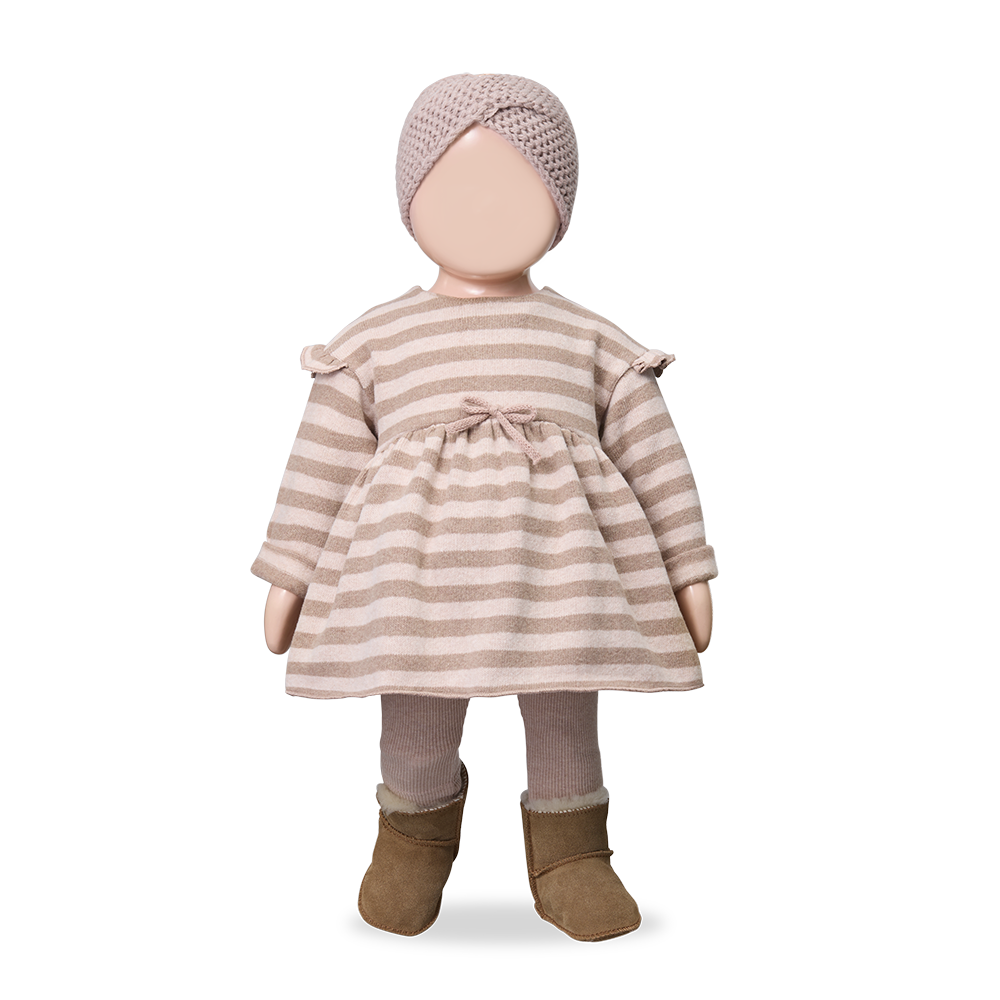 Heerlijk zacht baby jurkje van 1+ in the family in een prachtige roze streep. Het uitlopende model heeft een ronde hals, ruffle details bij schouders en een docaratief strikje. Hij is gemaakt van een warme organic cotton fleece. One more in the family valt iets kleiner dan normaal. Zie onderaan de pagina een overzicht van de maten.