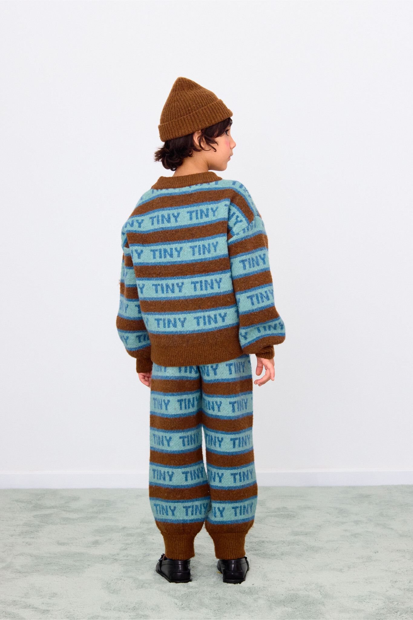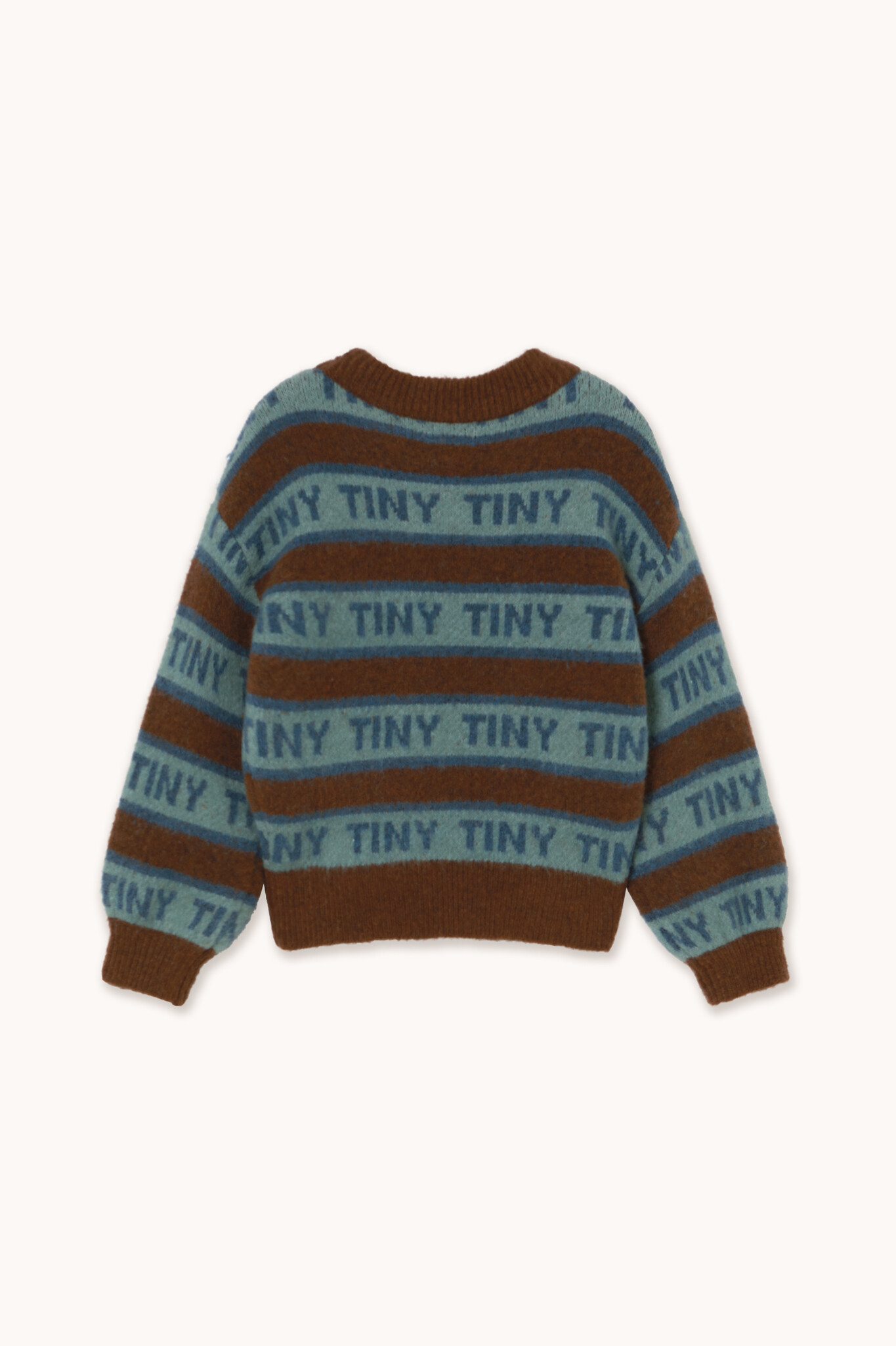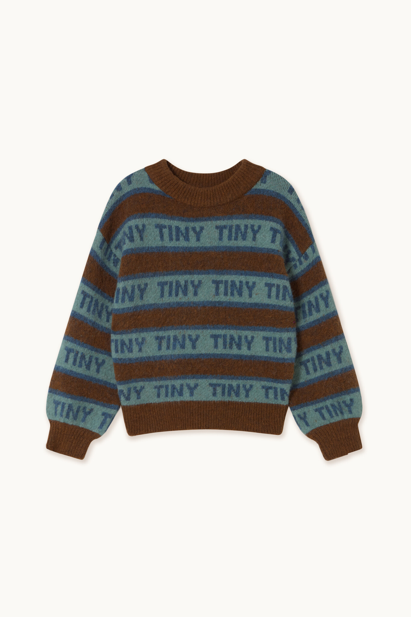 Prachtige gestreepte trui van Tinycottons in bruin en blauw met tiny tekst. De warme sweater heeft een ronde hals en geribbelde boorden. Hij is gemaakt van een heerlijke warme blend met wol. Lees meer