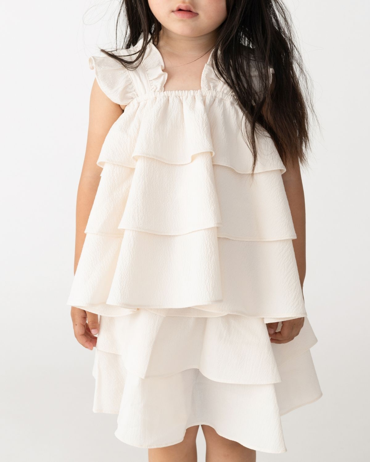 Prachtig rokje van Donsje in gebroken wit. Het volumineuze model heeft een elastische taille en elegante ruffle laagjes. Er is ook een bijpassende top! Donsje valt normaal op maat tot iets groter, zie onderaan de pagina een overzicht van de maten.